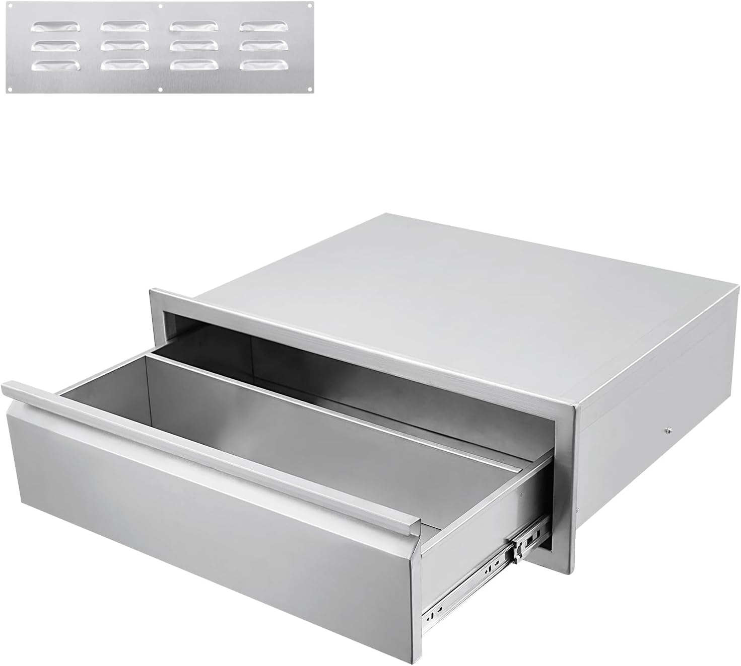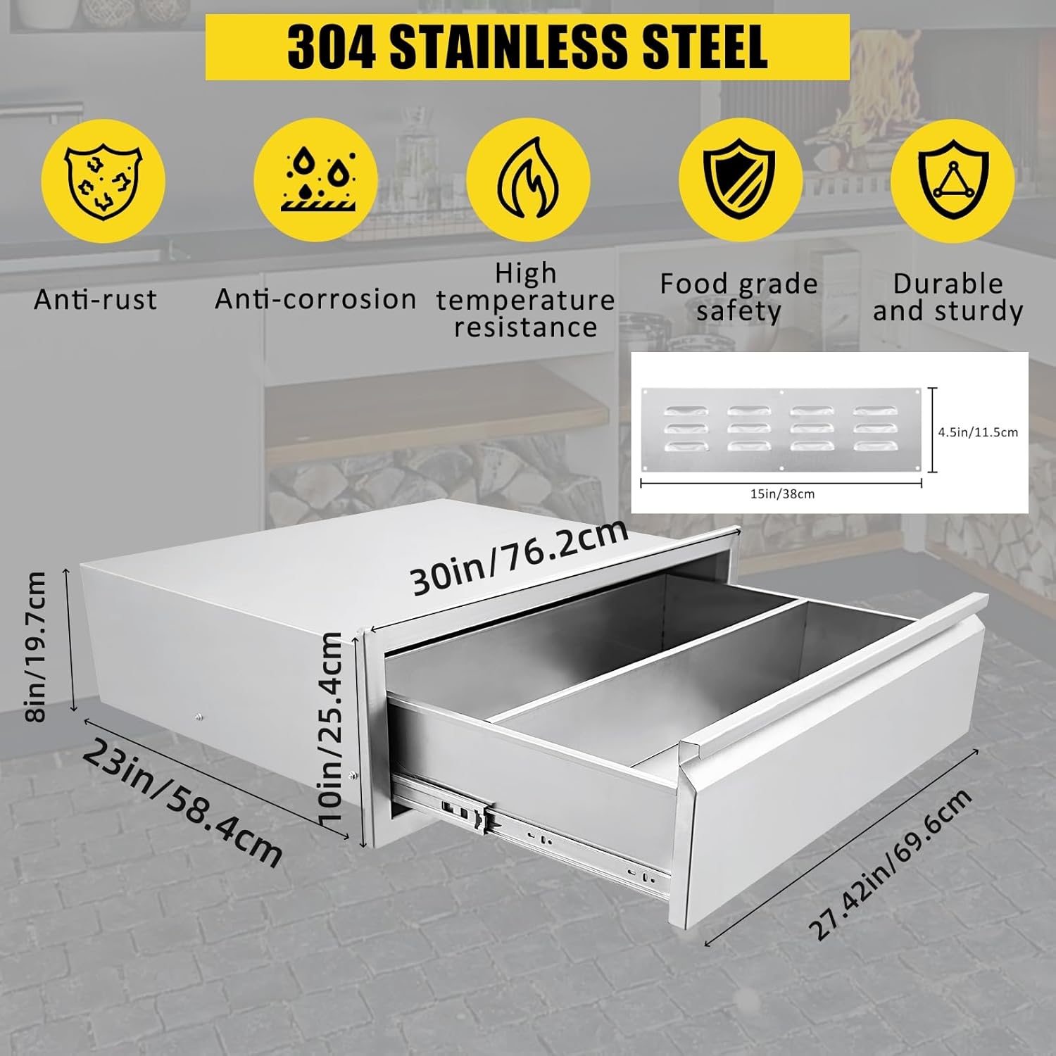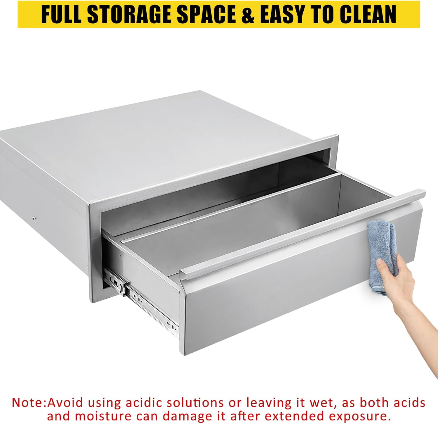 - – Weatherproof Design: Featuring a rainproof, windproof, and debris-proof design, The stainless steel BBQ drawers keep your items safe and clean. The seamless corners and soft edges enhance safety and prevent accidental injuries.
