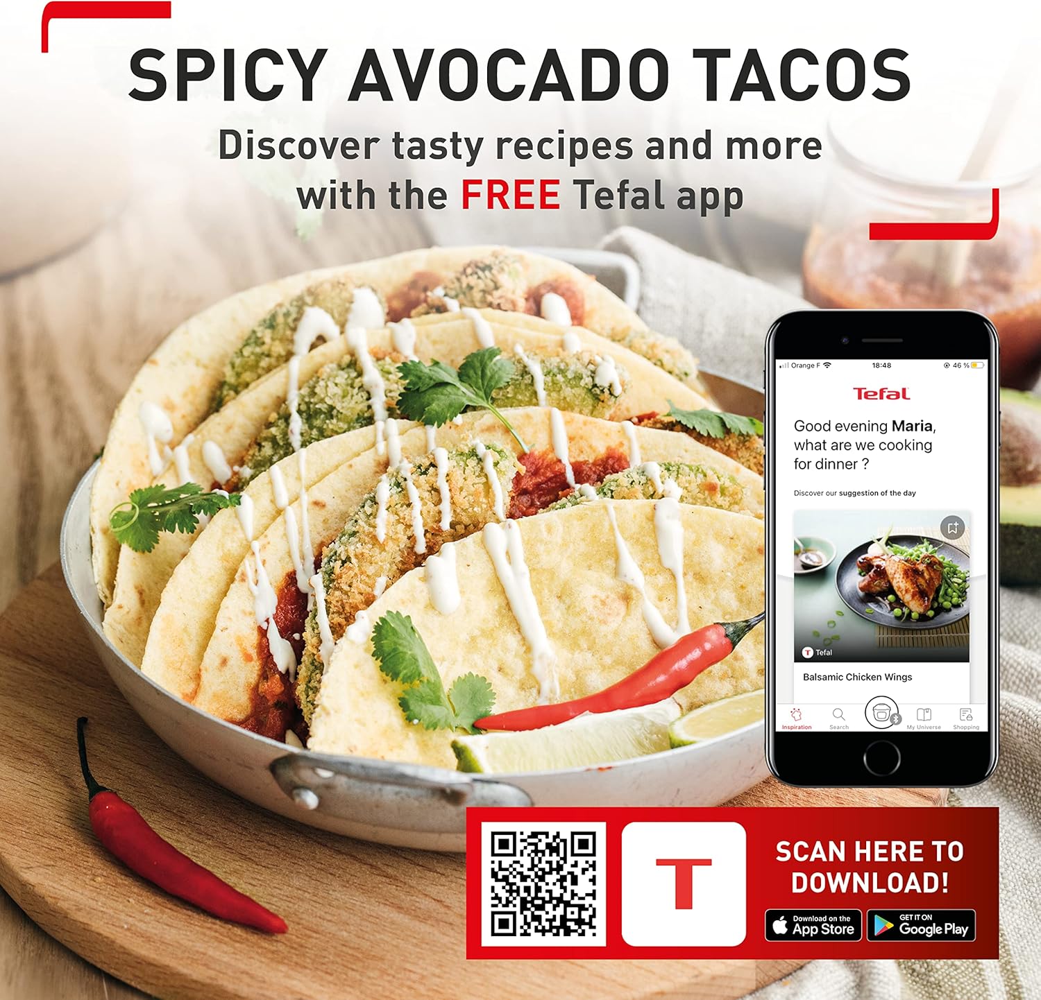 DOWNLOAD OUR APP: With over 100 recipes on the free Tefal app, plus access to a hand-picked selection of seasonal recipes and tips, you’ll never run out of meal ideas