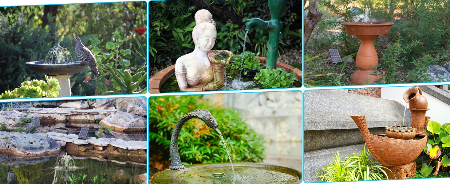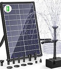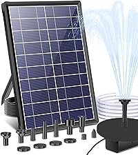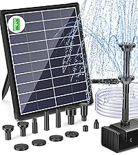2 WAYS TO USE: Solar pond fountain include 6 nozzles and 1.2m water pipes. Use the nozzels to make a solar fountain for bird baths and garden ponds. Connect a water pipe to solar pumps for garden water features, great water pump for water feature outdoor