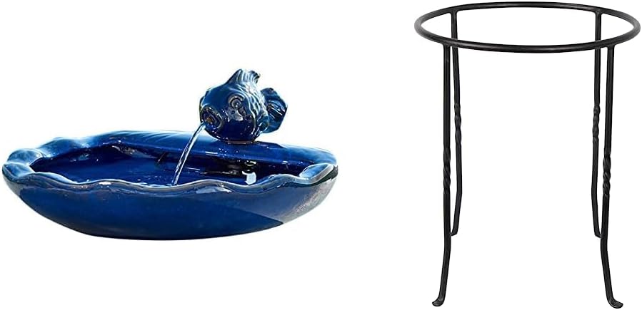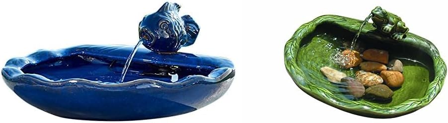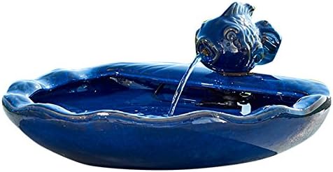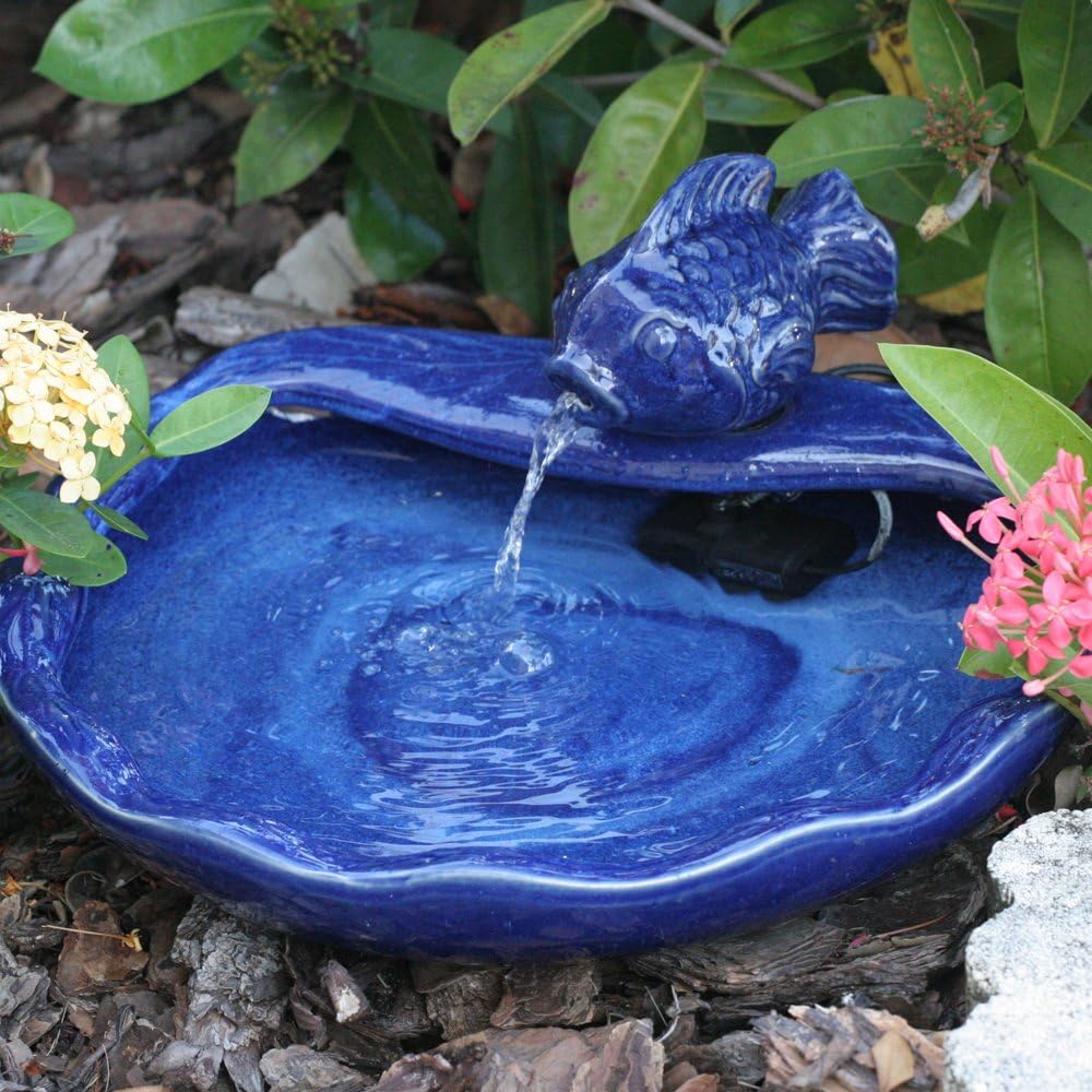 Ceramic Solar Koi Fountain,Blue Glazed Finish