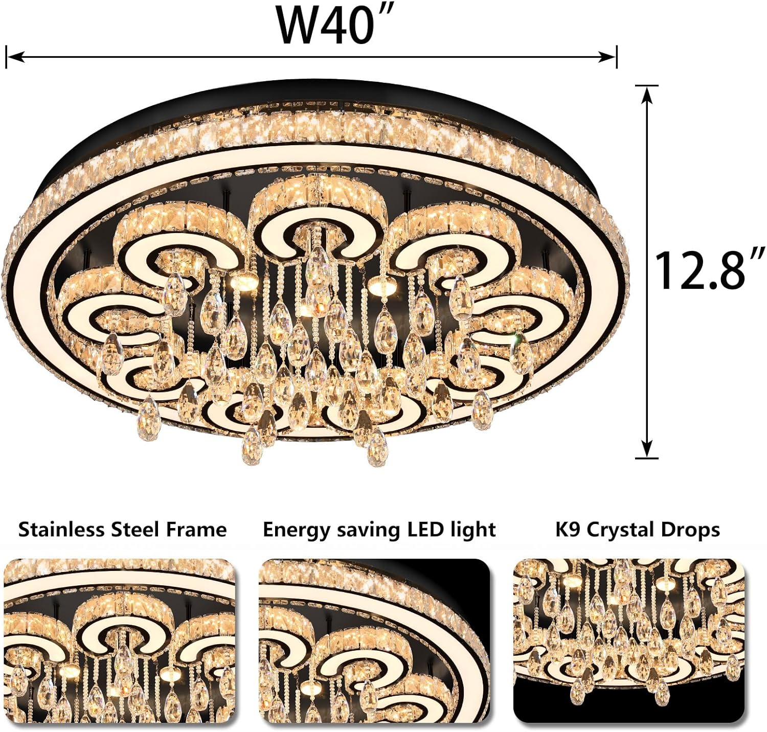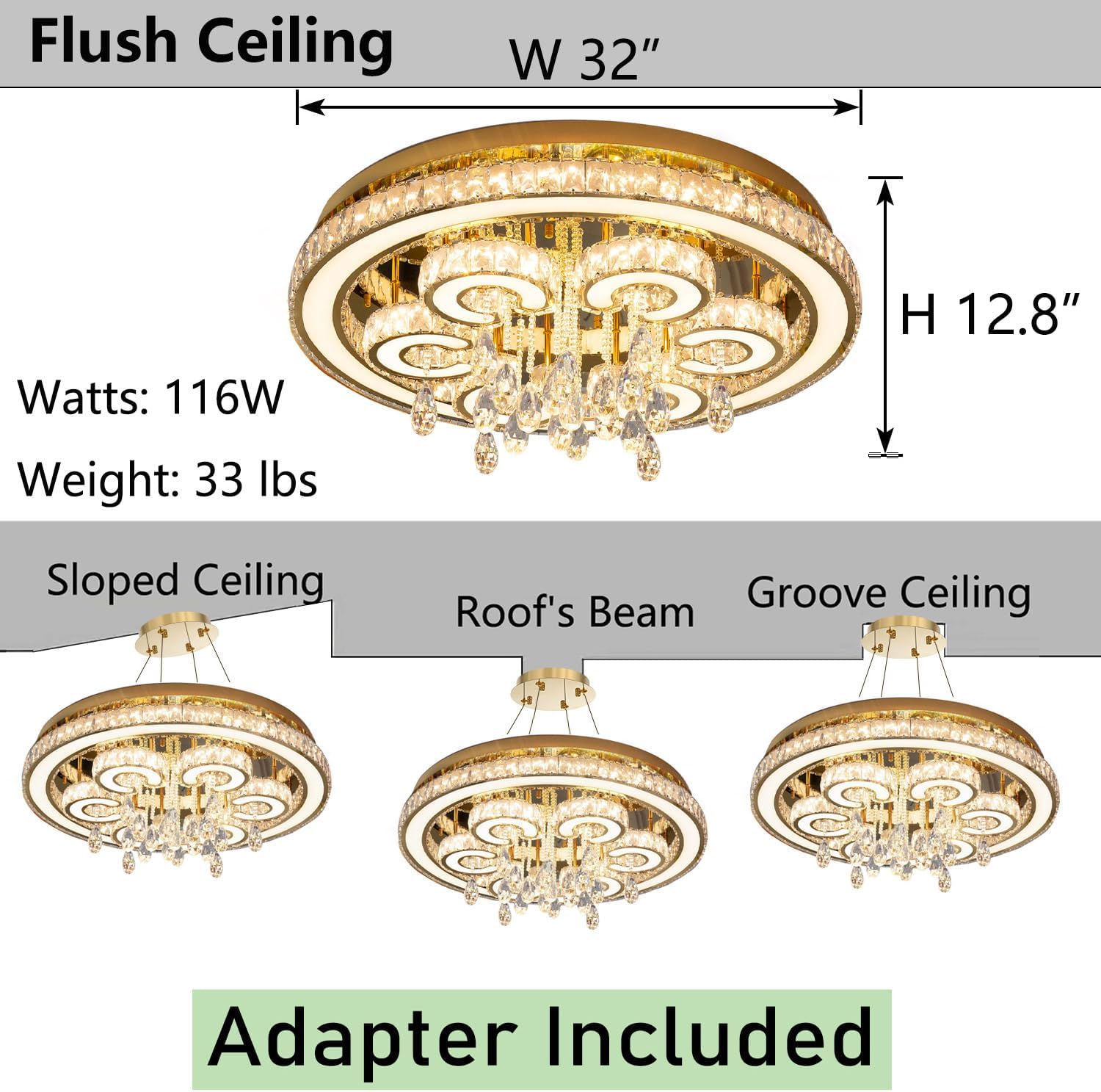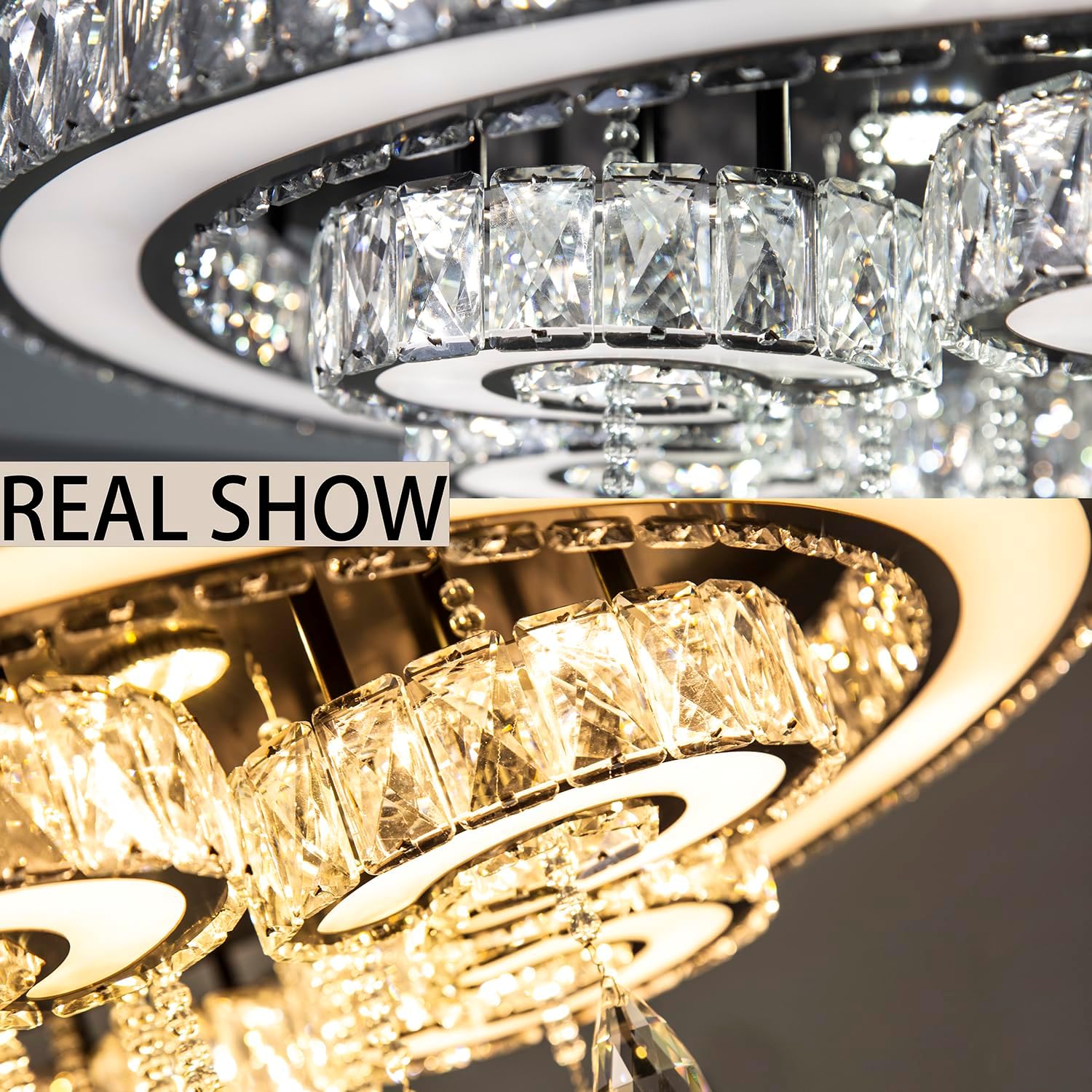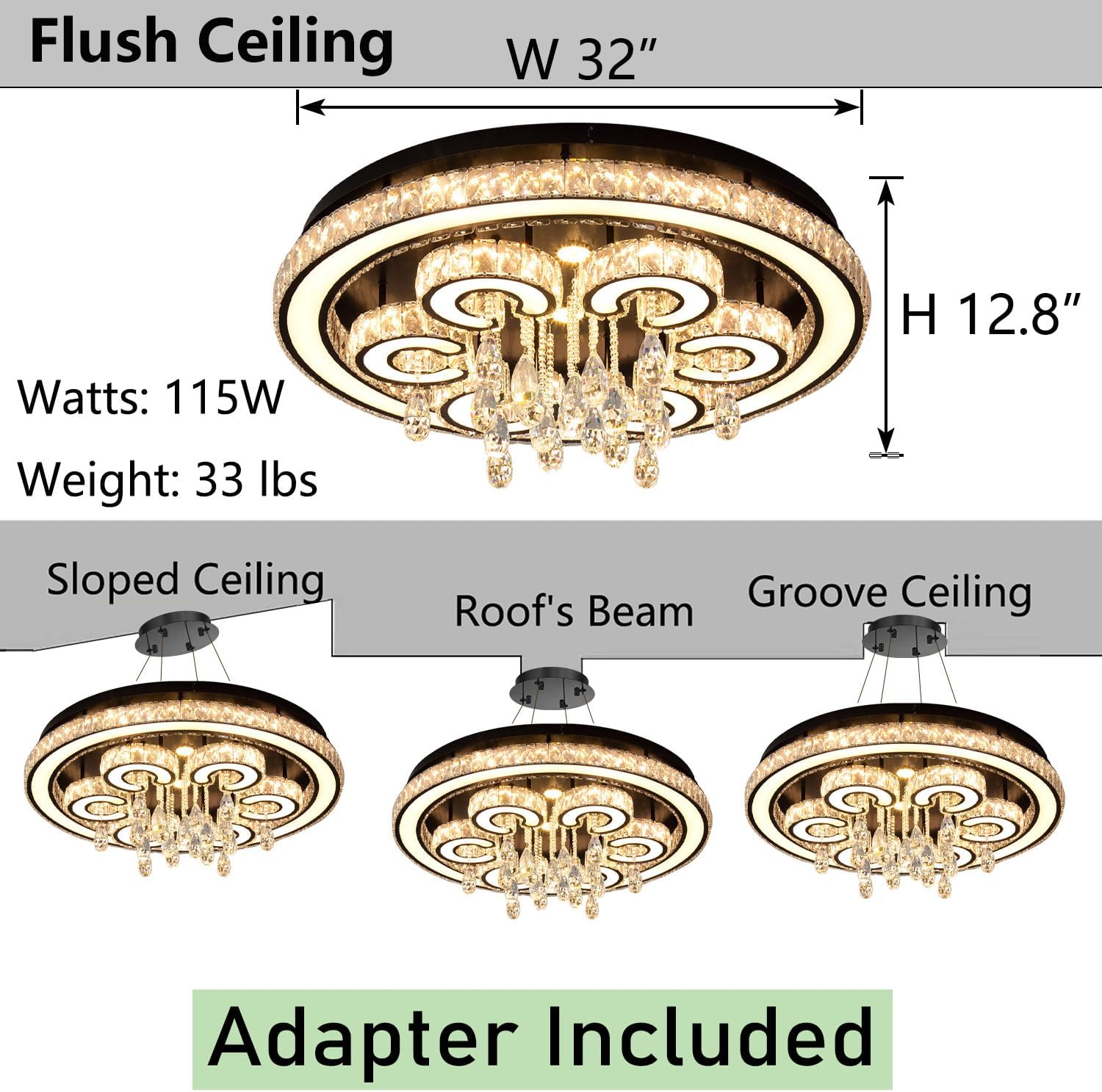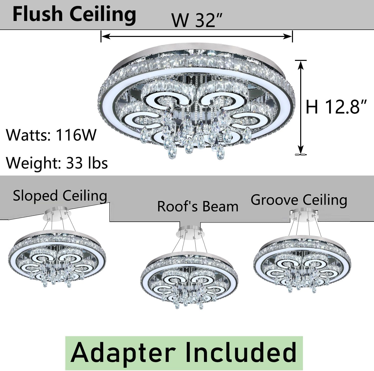 Modern Gorgeous Chandeliers – 32in80cm diameter, 12in30.5cm height, 33lb15kg weight. Top class K9 crystal and stainless steel finished. LED dimmer and dimmable light included Note: it has own dimmer, Do not use with any dimming system or dimmer switch