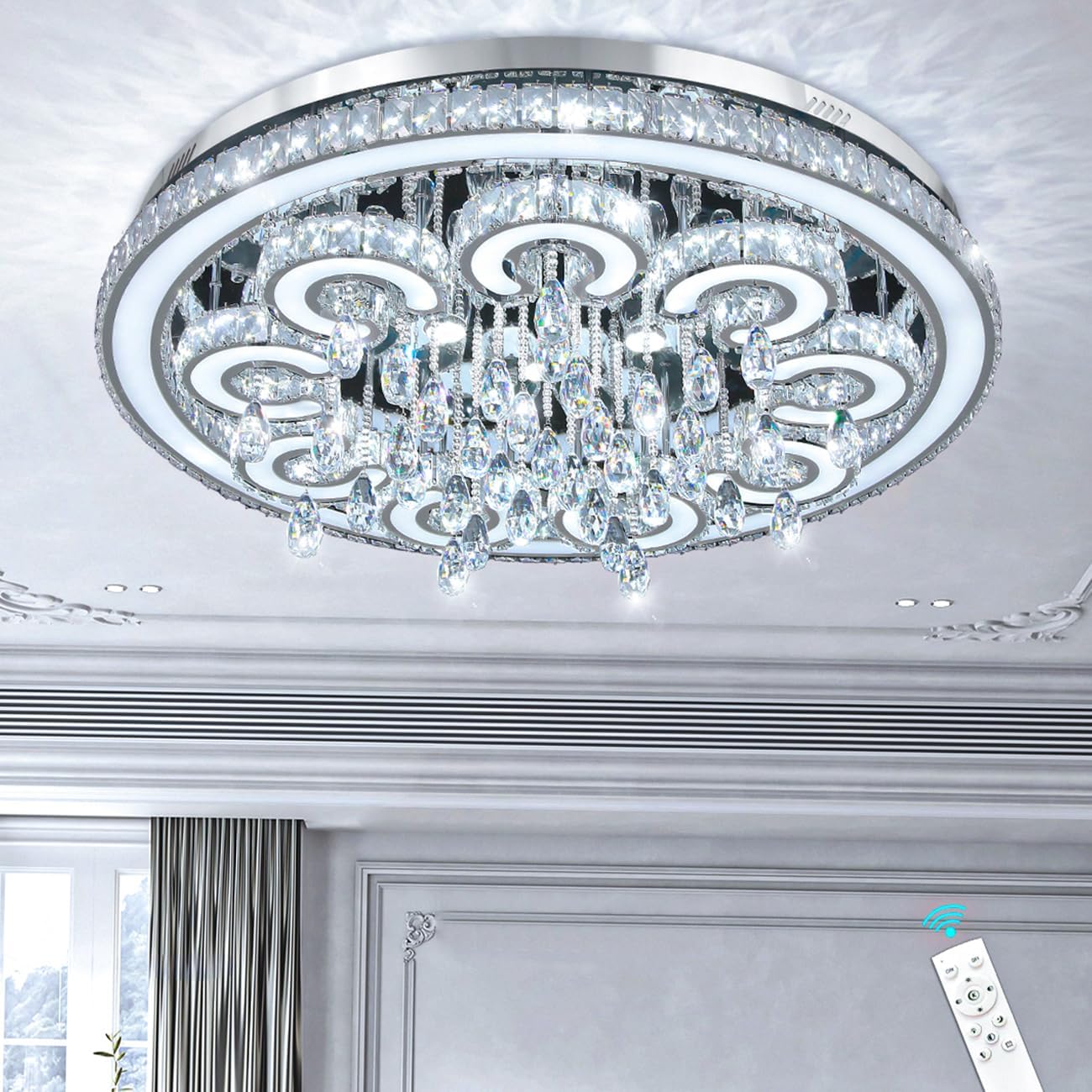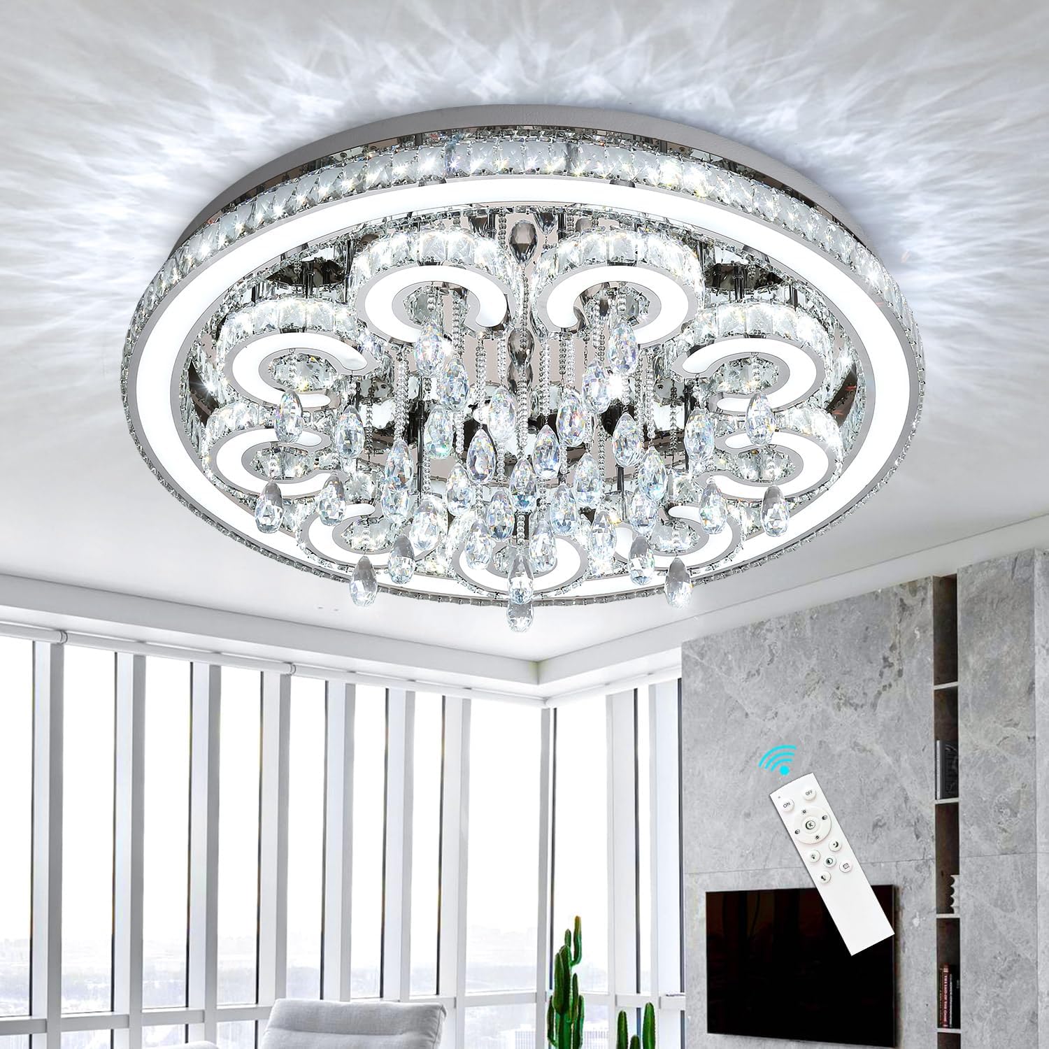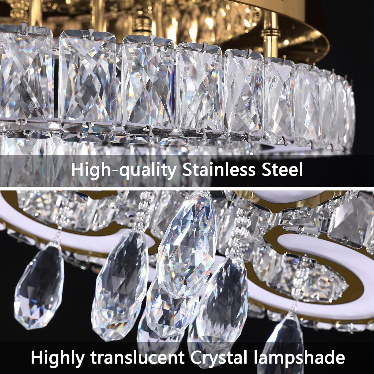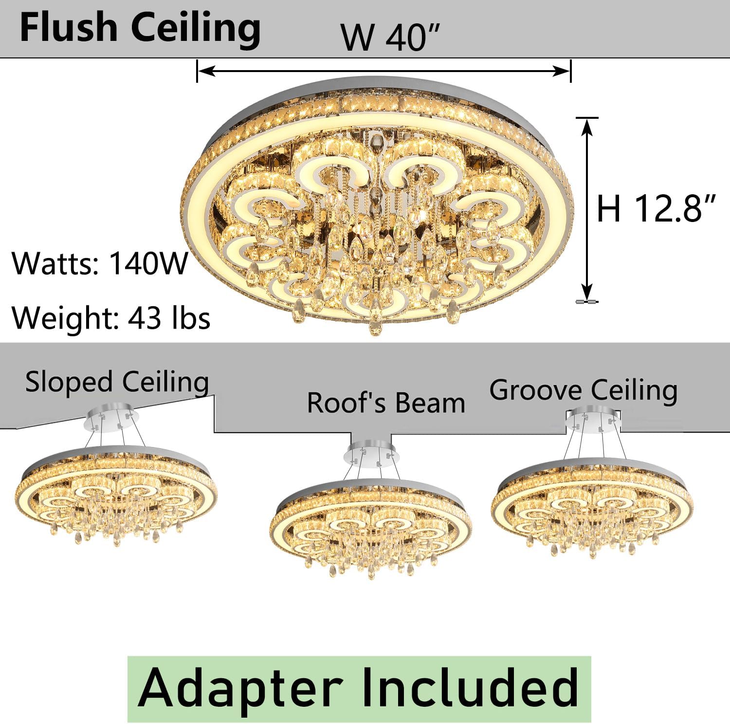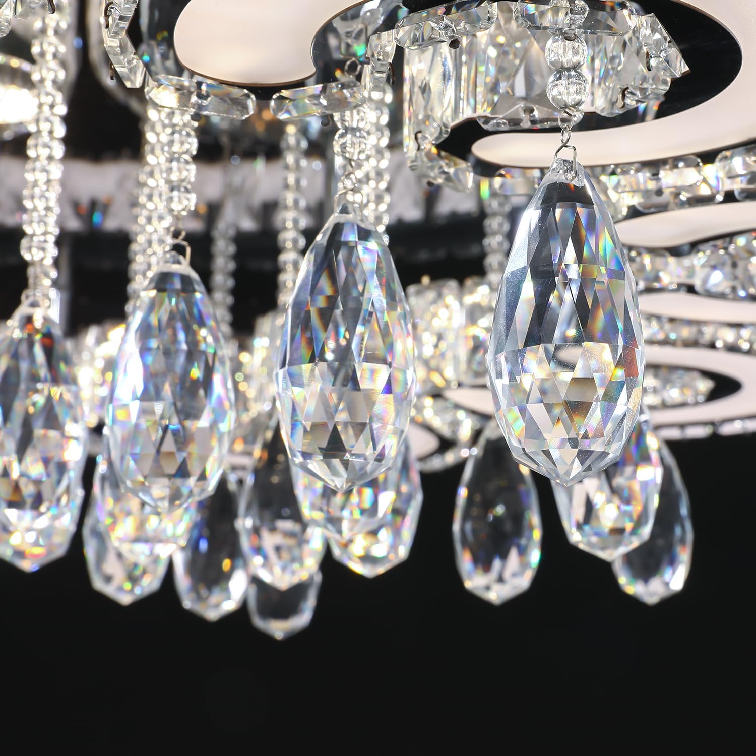 Modern Gorgeous Chandeliers – 32in80cm diameter, 12in30.5cm height, 33lb15kg weight. Top class K9 crystal and stainless steel finished. LED dimmer and dimmable light included Note: it has own dimmer, Do not use with any dimming system or dimmer switch