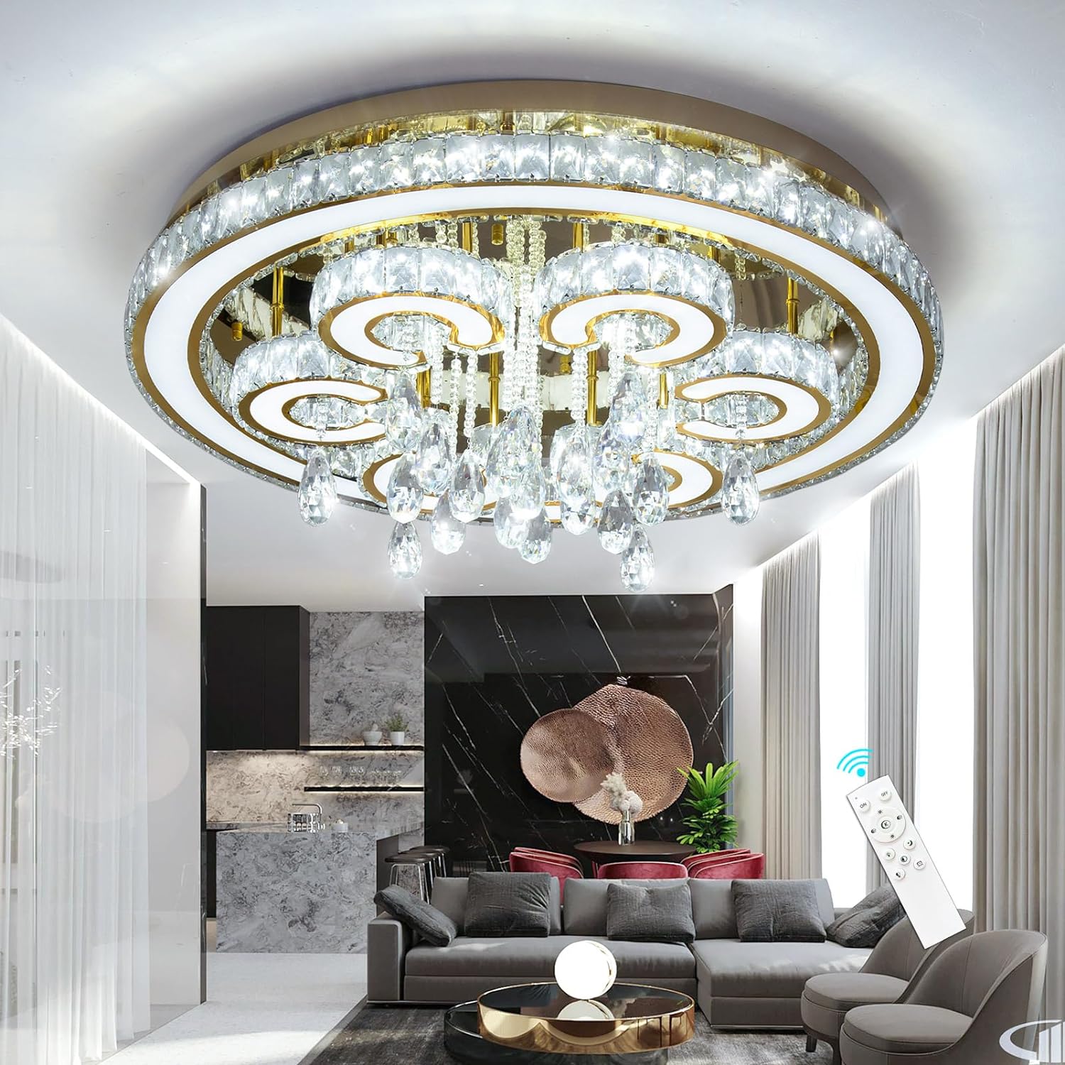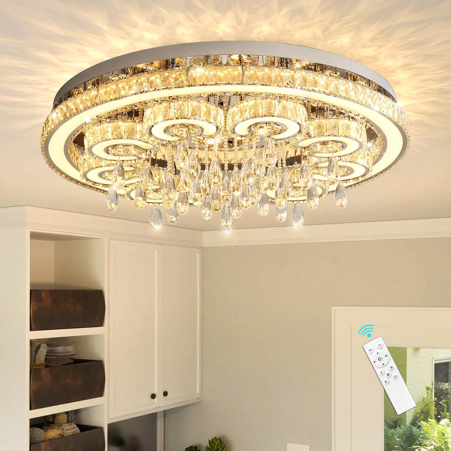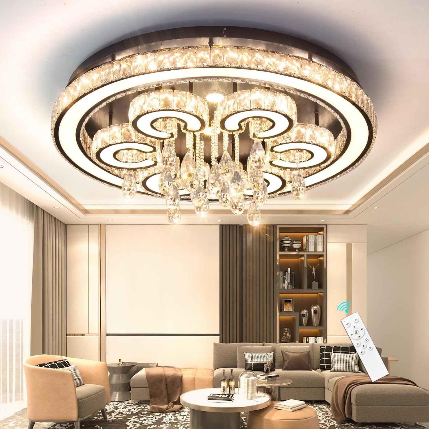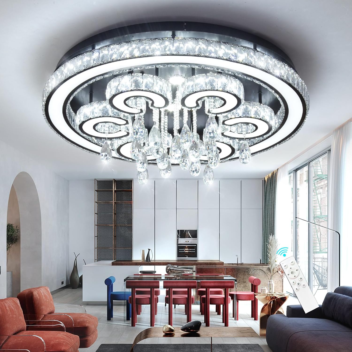 Modern Gorgeous Chandeliers – 32in80cm diameter, 12in30.5cm height, 33lb15kg weight. Top class K9 crystal and stainless steel finished. LED dimmer and dimmable light included Note: it has own dimmer, Do not use with any dimming system or dimmer switch