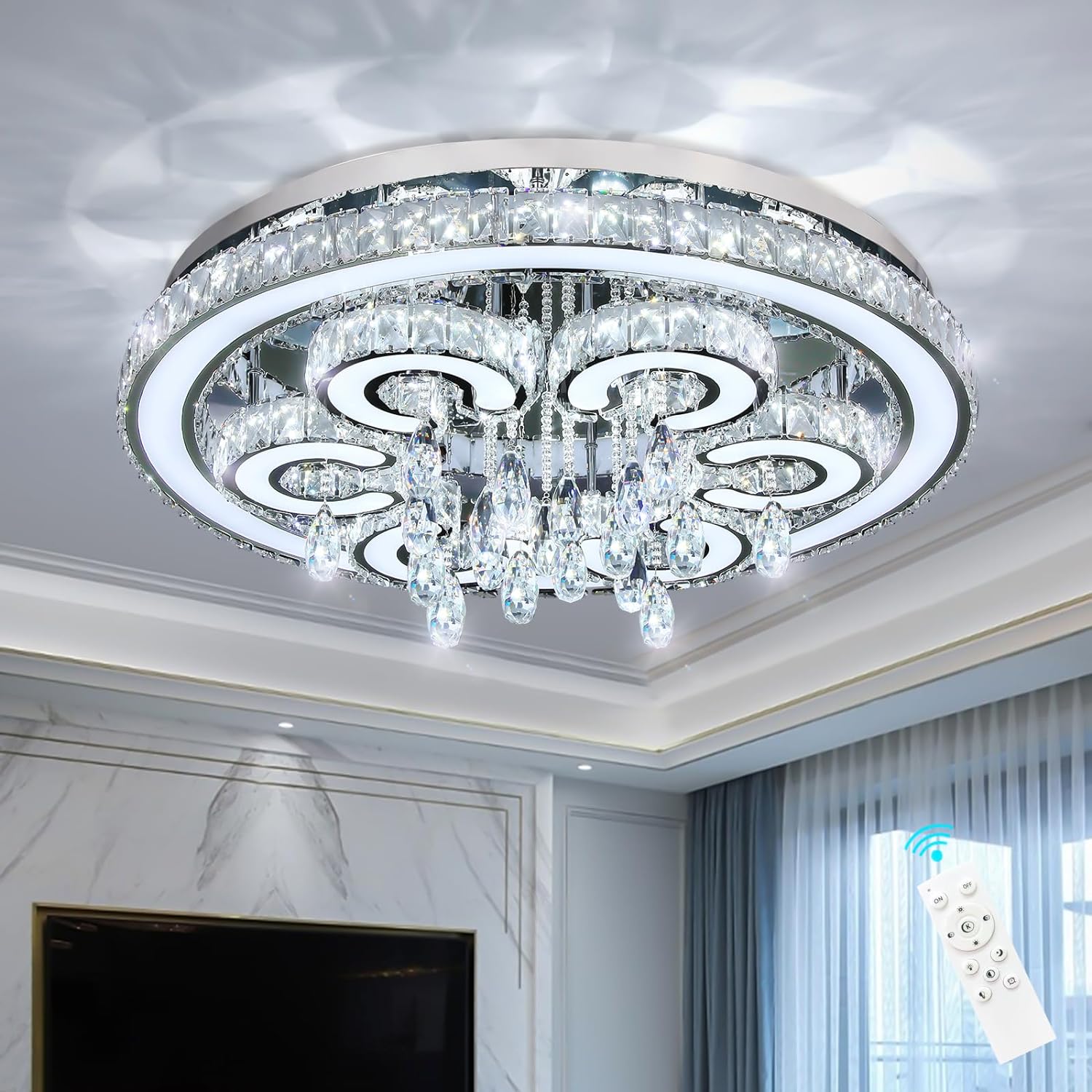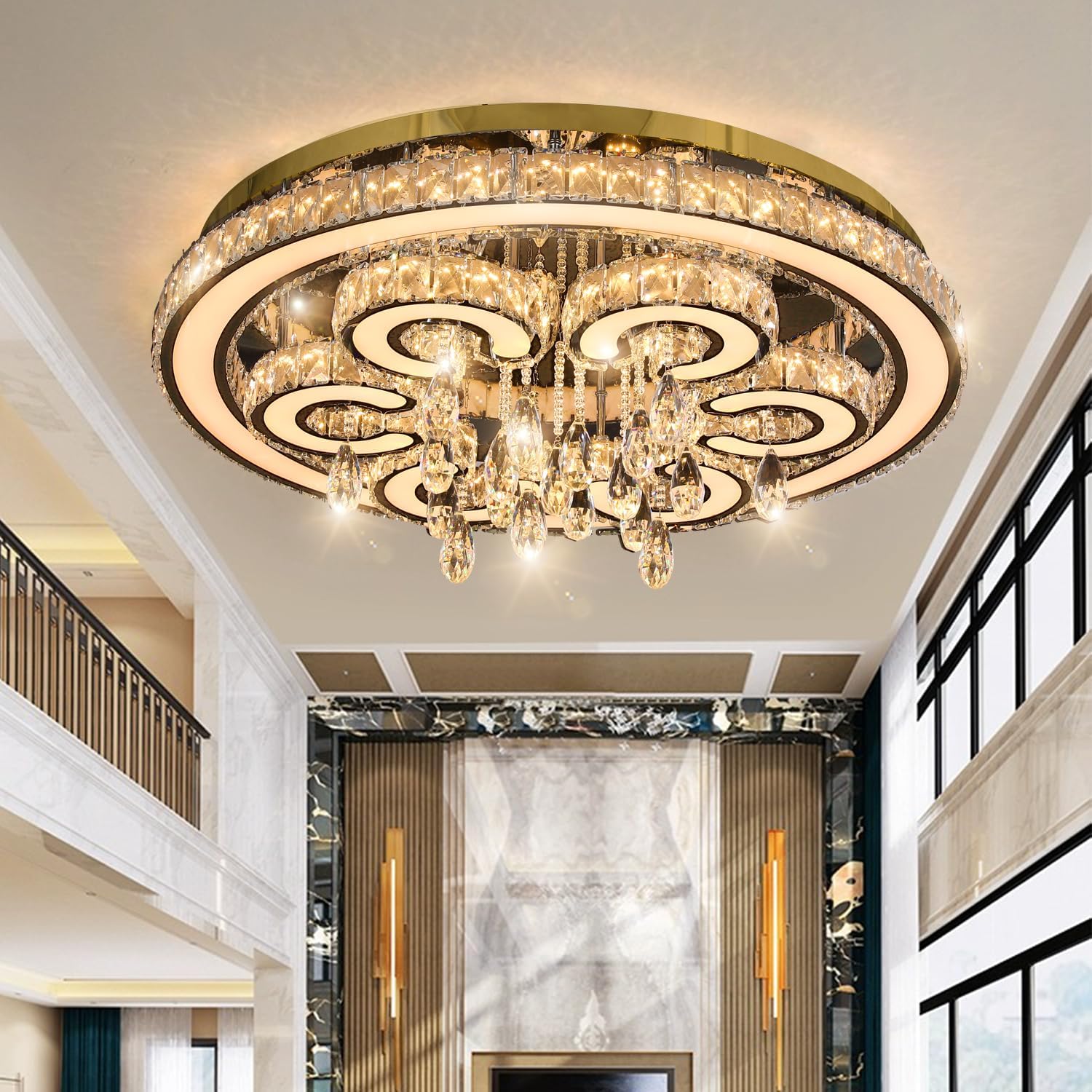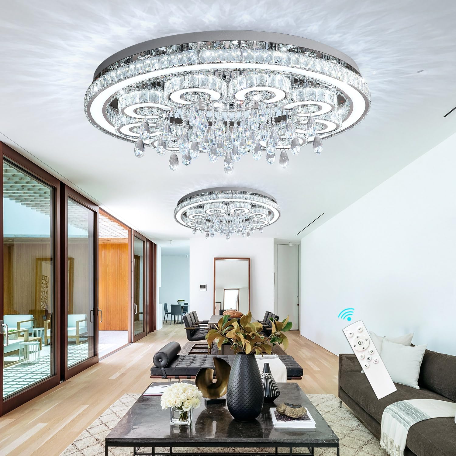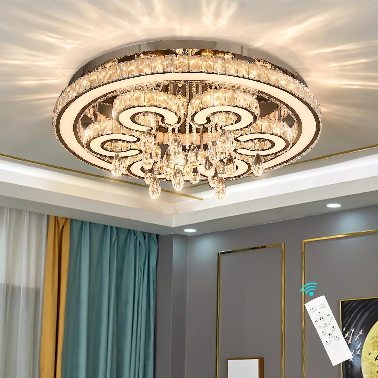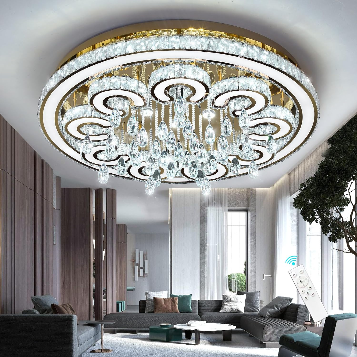 Modern Gorgeous Chandeliers – 32in80cm diameter, 12in30.5cm height, 33lb15kg weight. Top class K9 crystal and stainless steel finished. LED dimmer and dimmable light included Note: it has own dimmer, Do not use with any dimming system or dimmer switch
