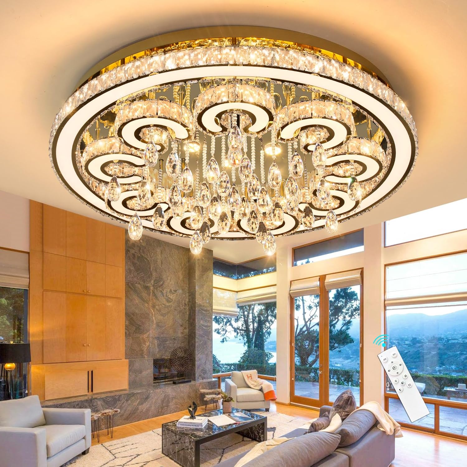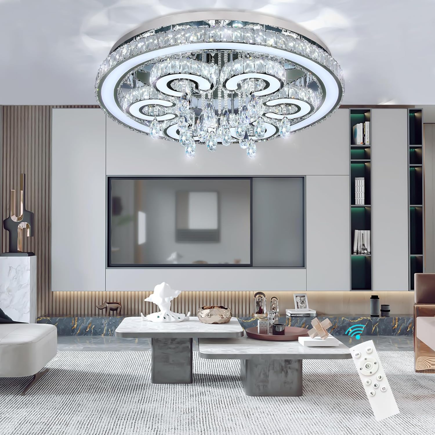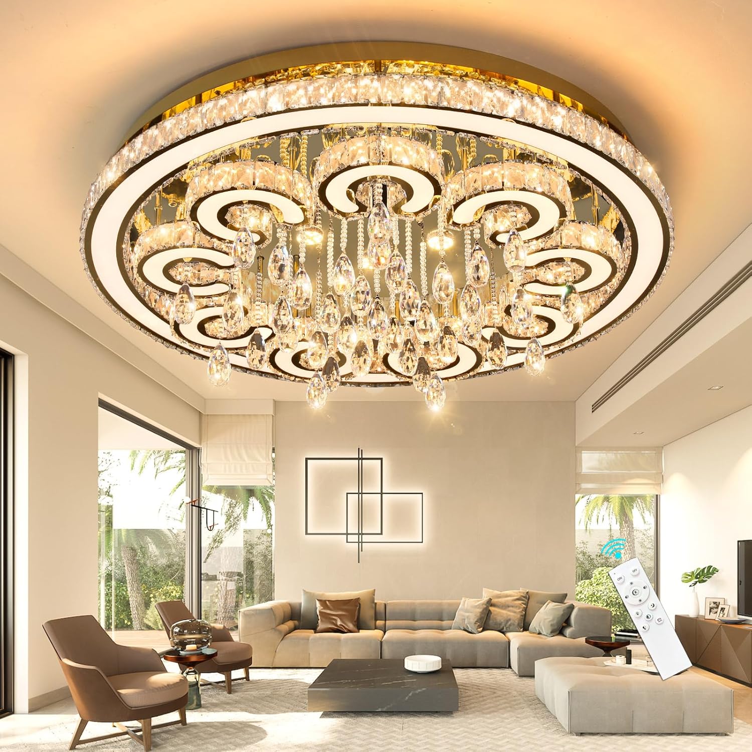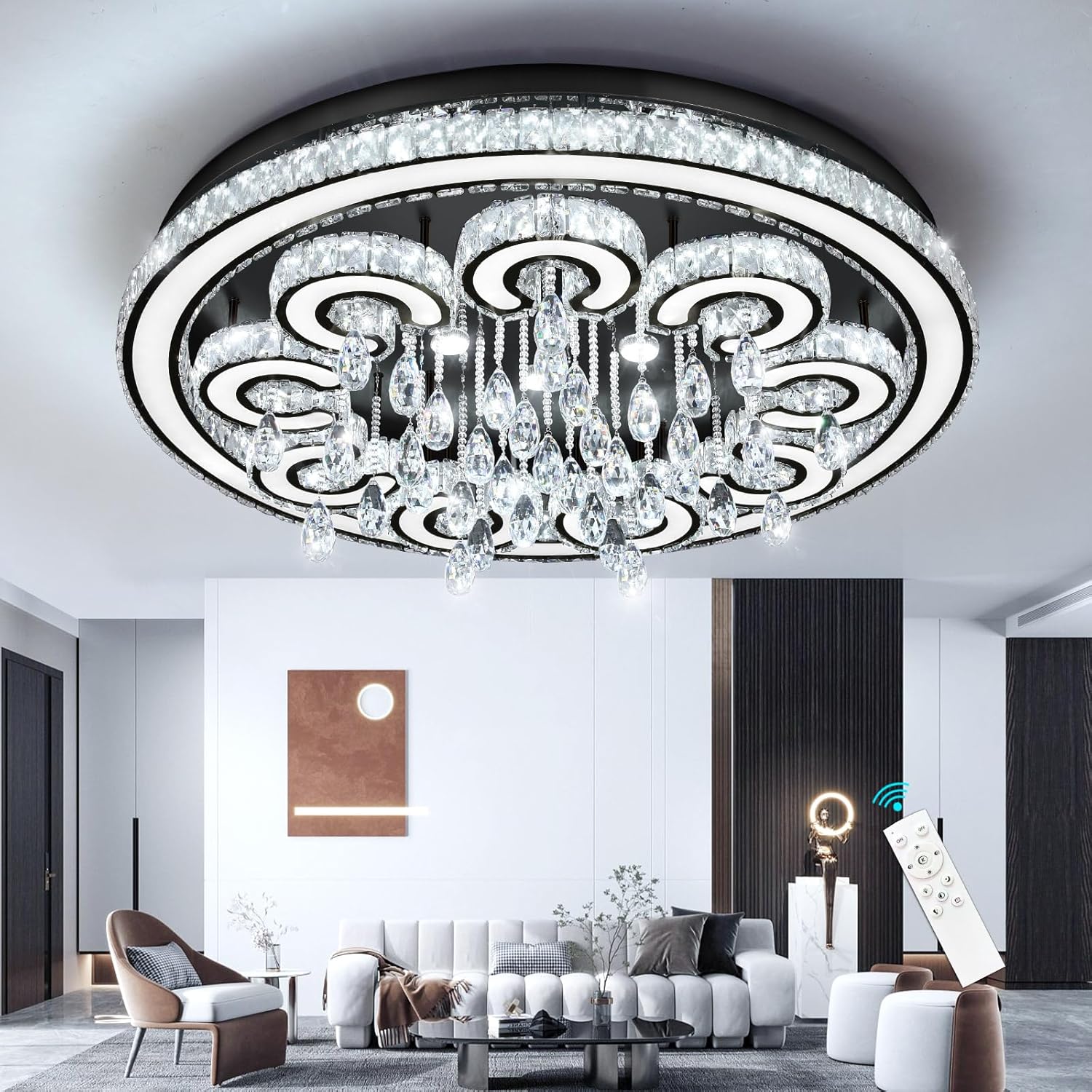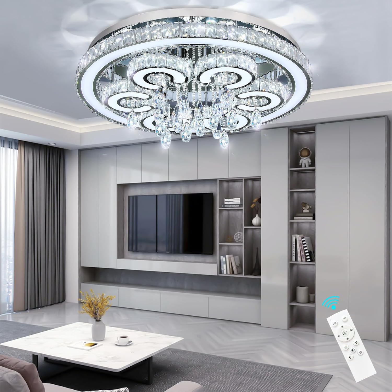 Modern Gorgeous Chandeliers – 32in80cm diameter, 12in30.5cm height, 33lb15kg weight. Top class K9 crystal and stainless steel finished. LED dimmer and dimmable light included Note: it has own dimmer, Do not use with any dimming system or dimmer switch