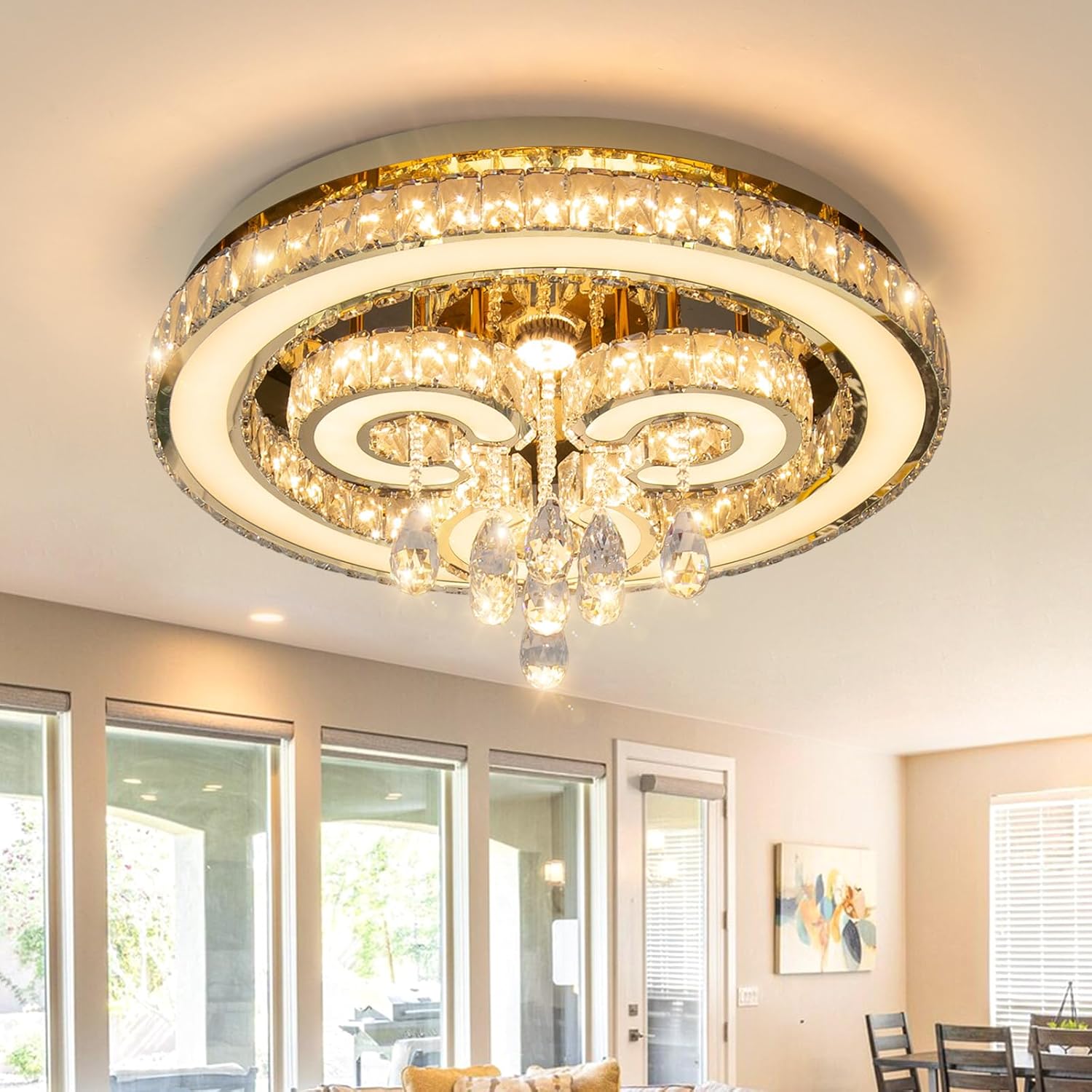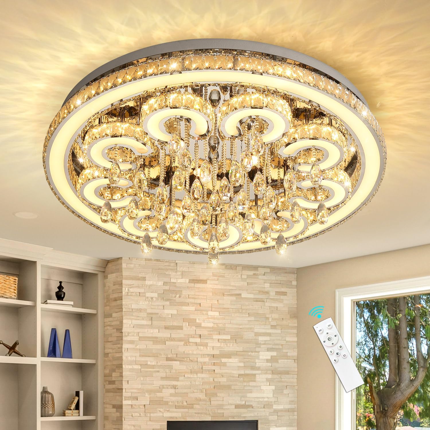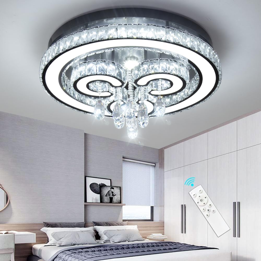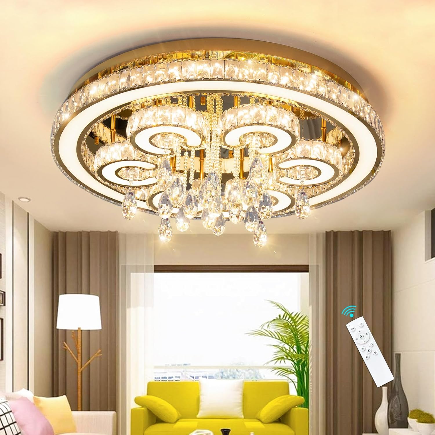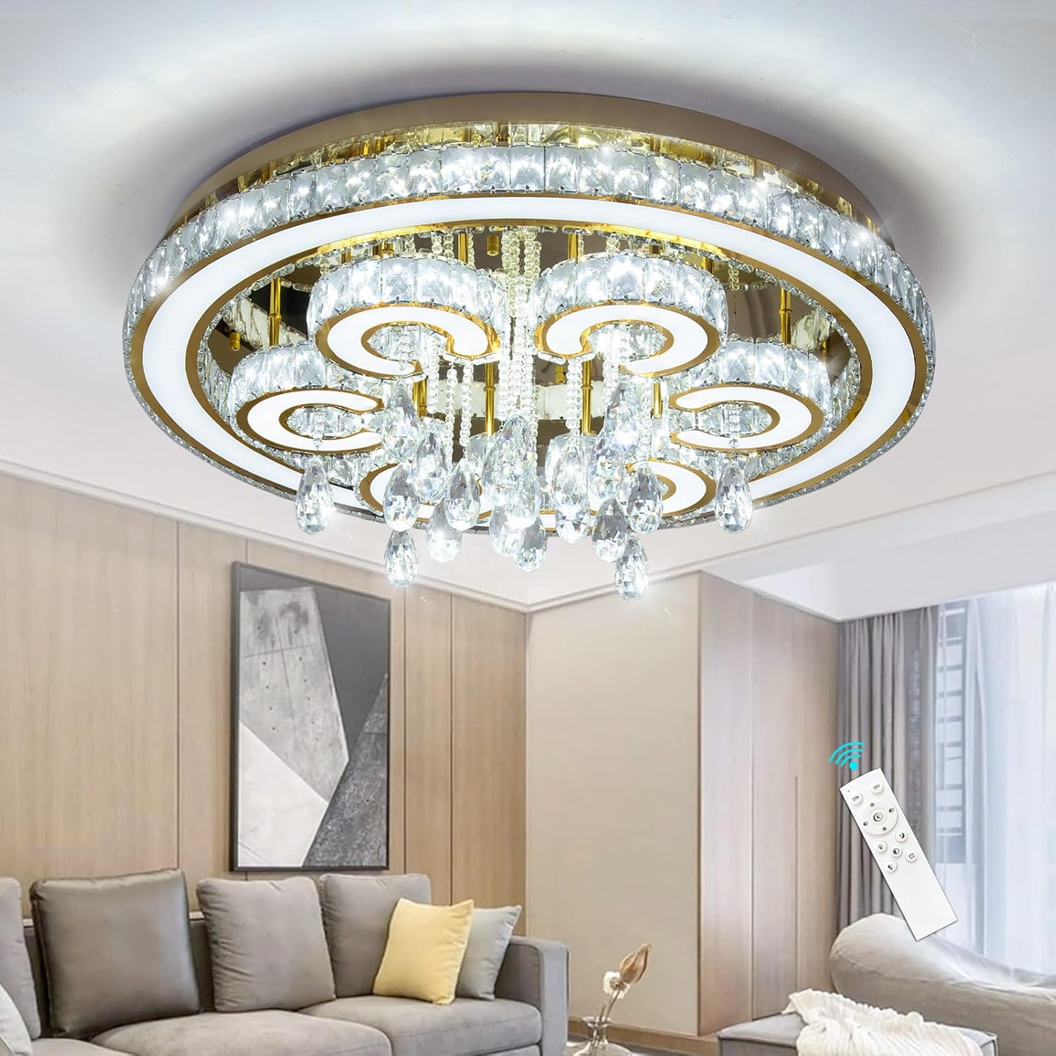 Modern Gorgeous Chandeliers – 32in80cm diameter, 12in30.5cm height, 33lb15kg weight. Top class K9 crystal and stainless steel finished. LED dimmer and dimmable light included Note: it has own dimmer, Do not use with any dimming system or dimmer switch