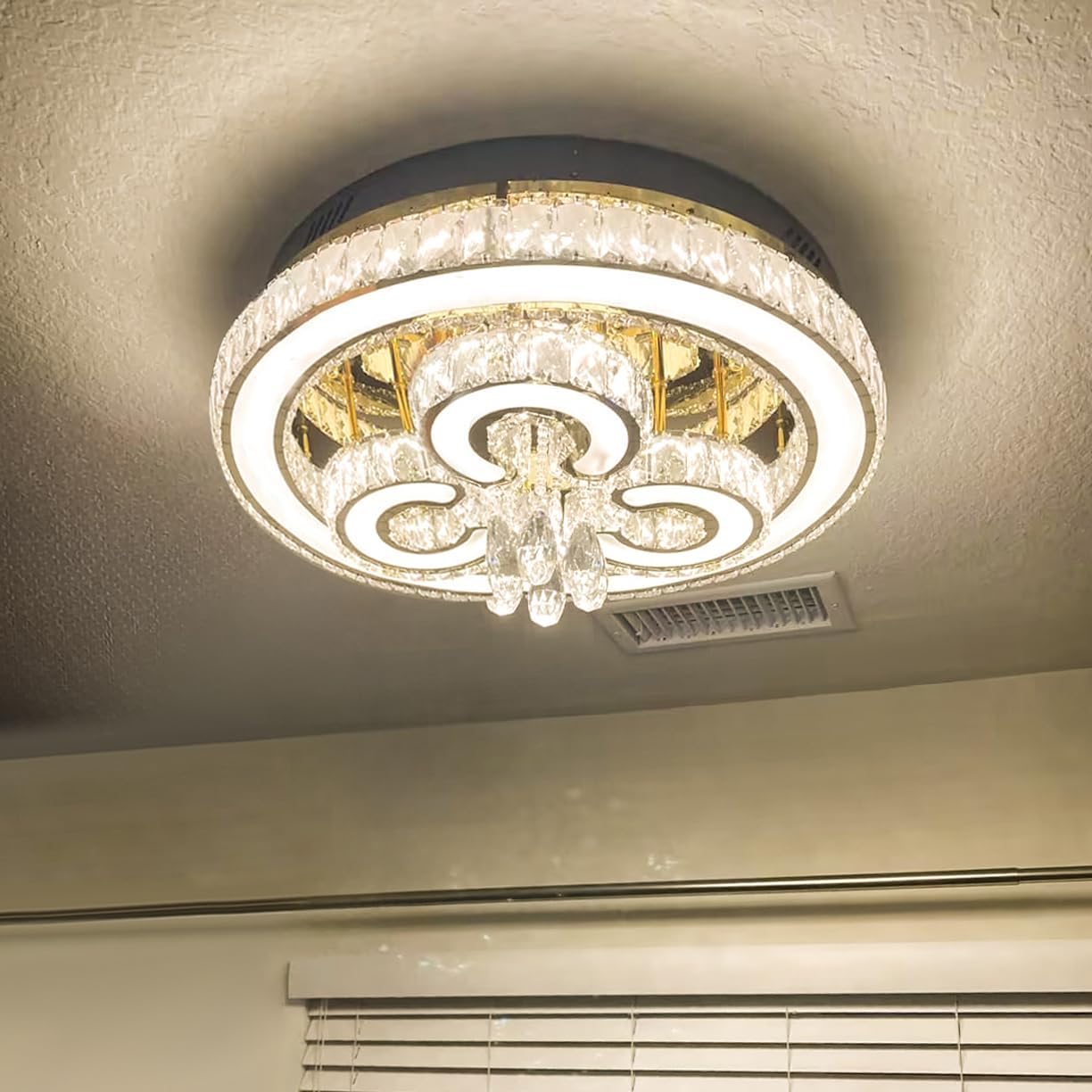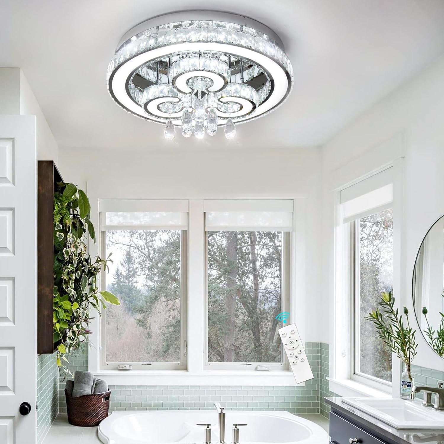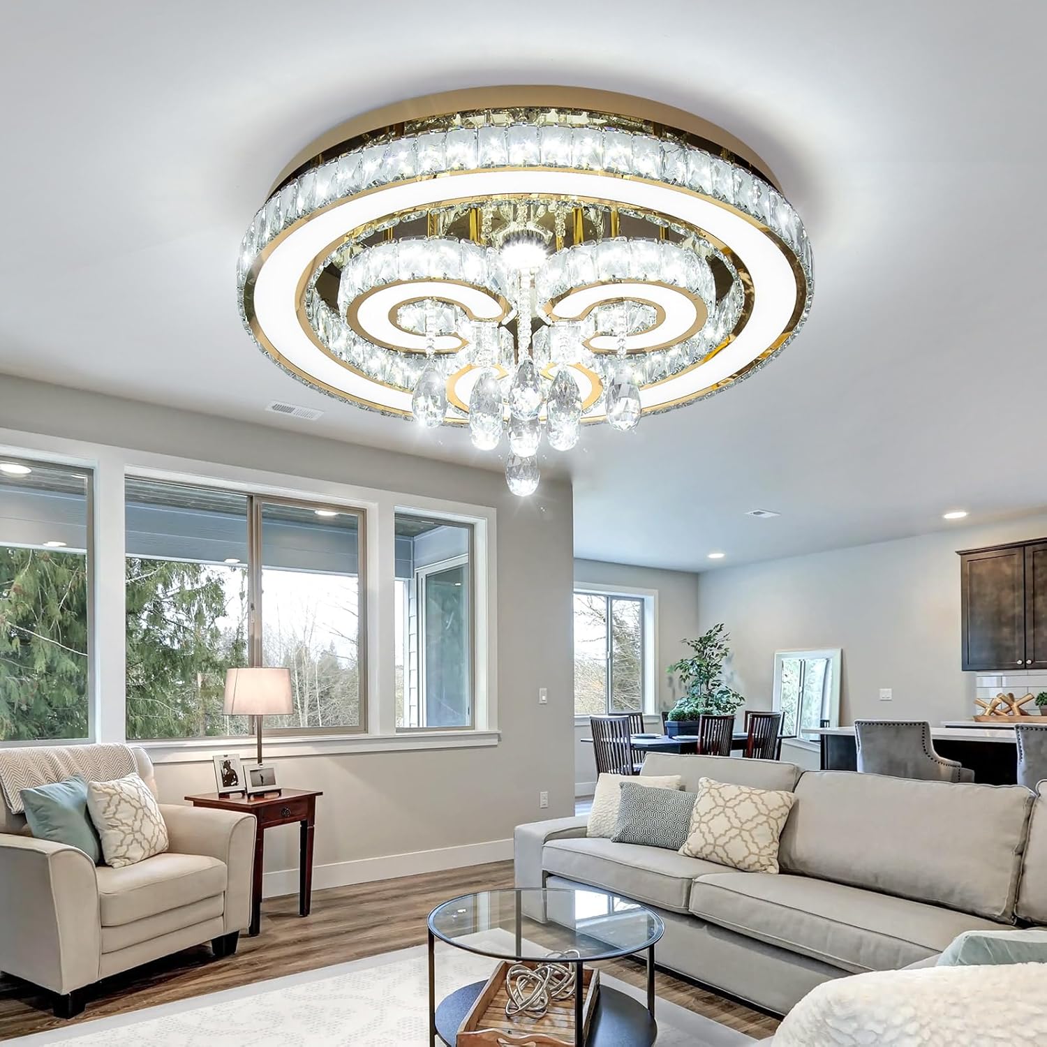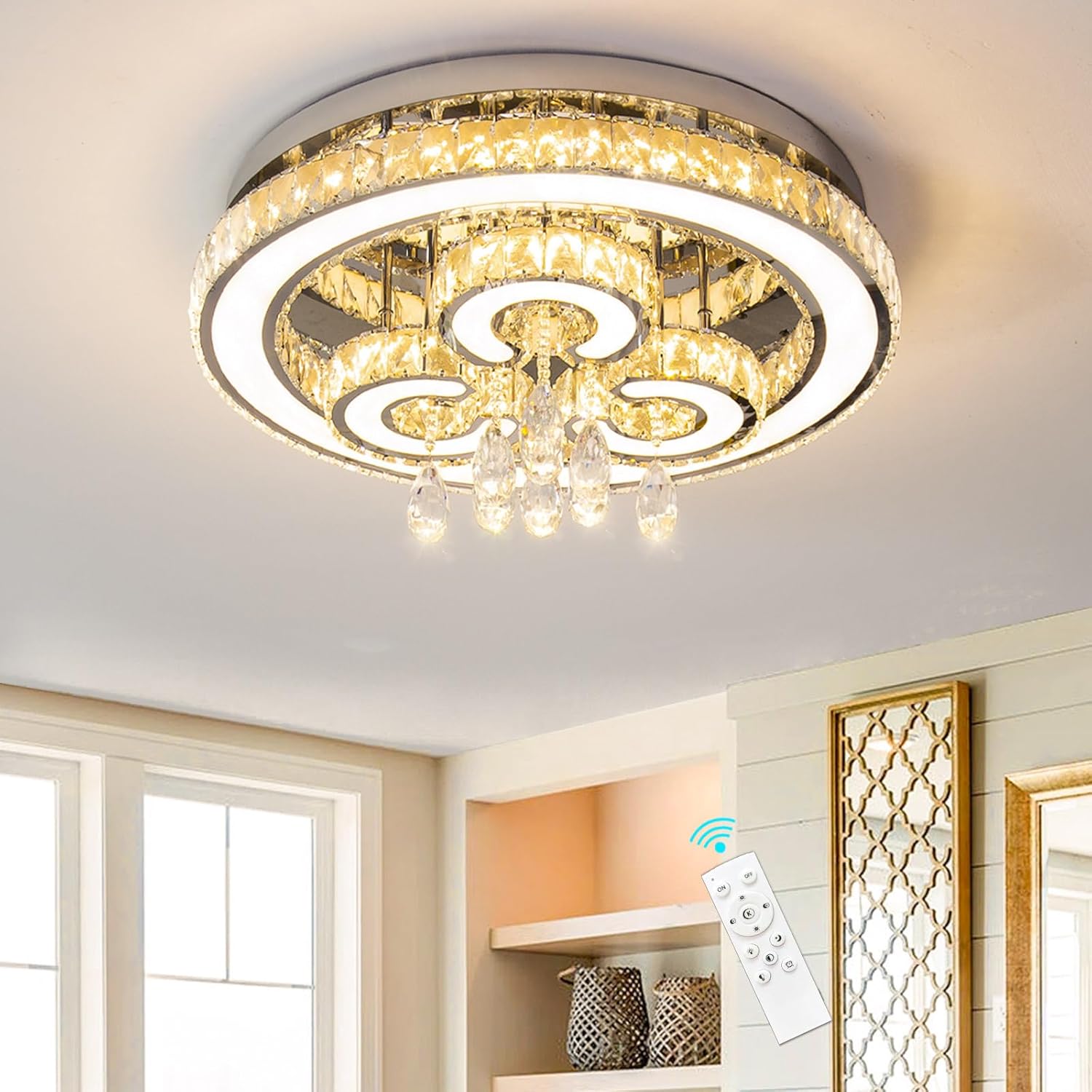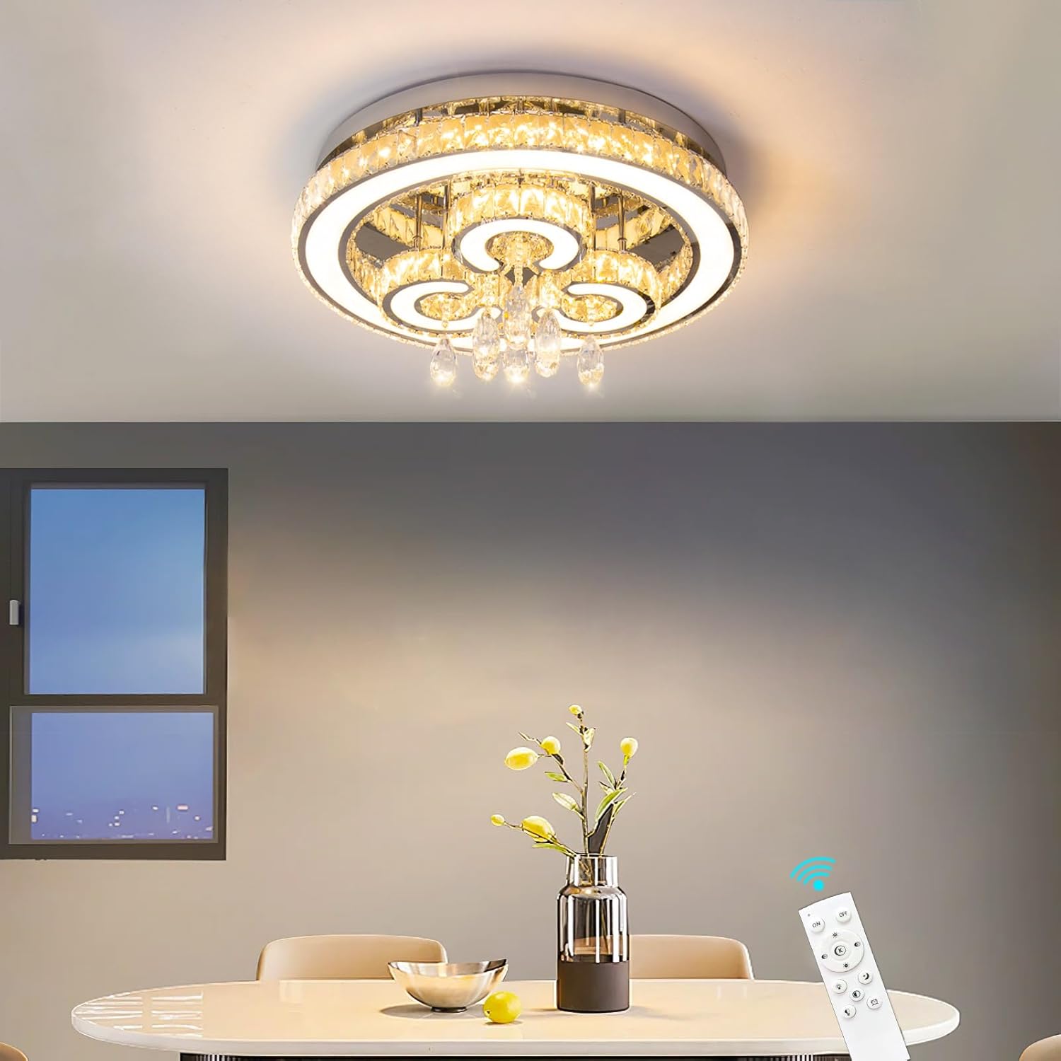 Modern Gorgeous Chandeliers – 32in80cm diameter, 12in30.5cm height, 33lb15kg weight. Top class K9 crystal and stainless steel finished. LED dimmer and dimmable light included Note: it has own dimmer, Do not use with any dimming system or dimmer switch
