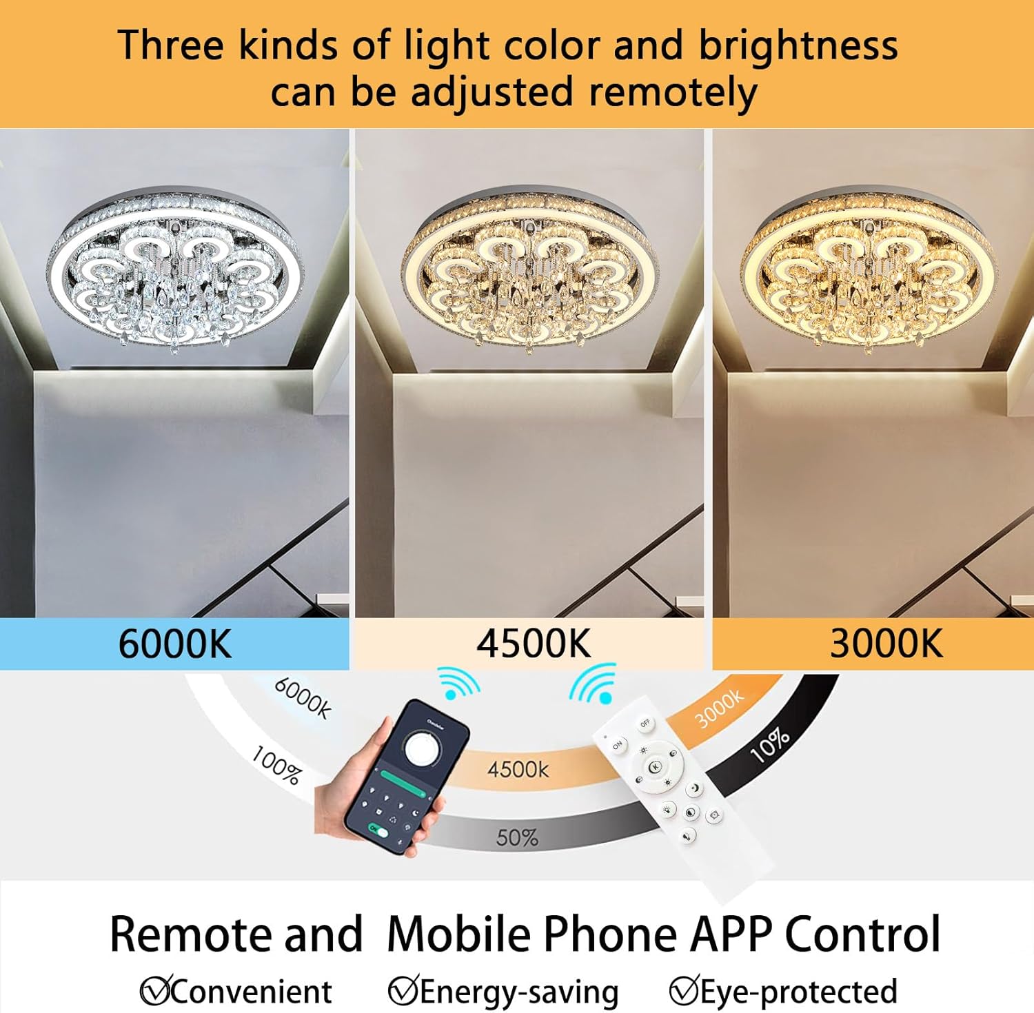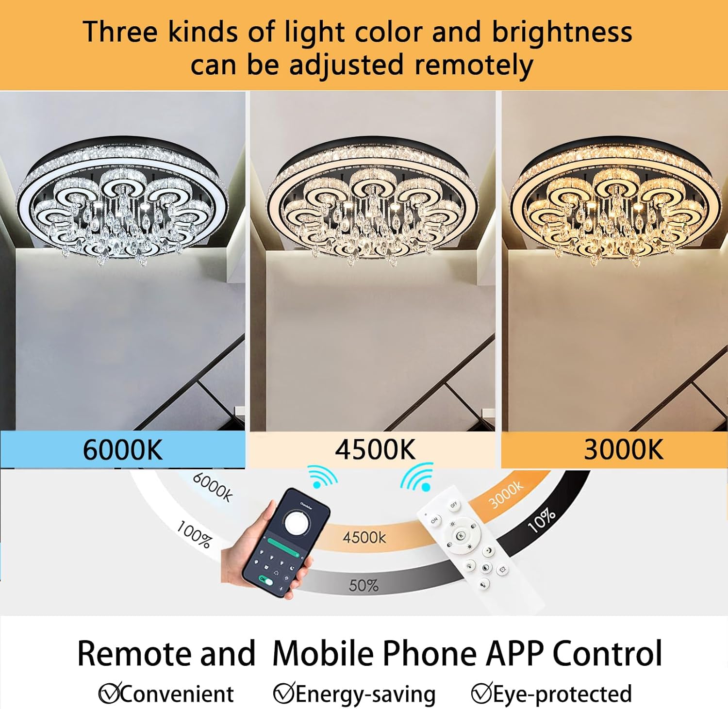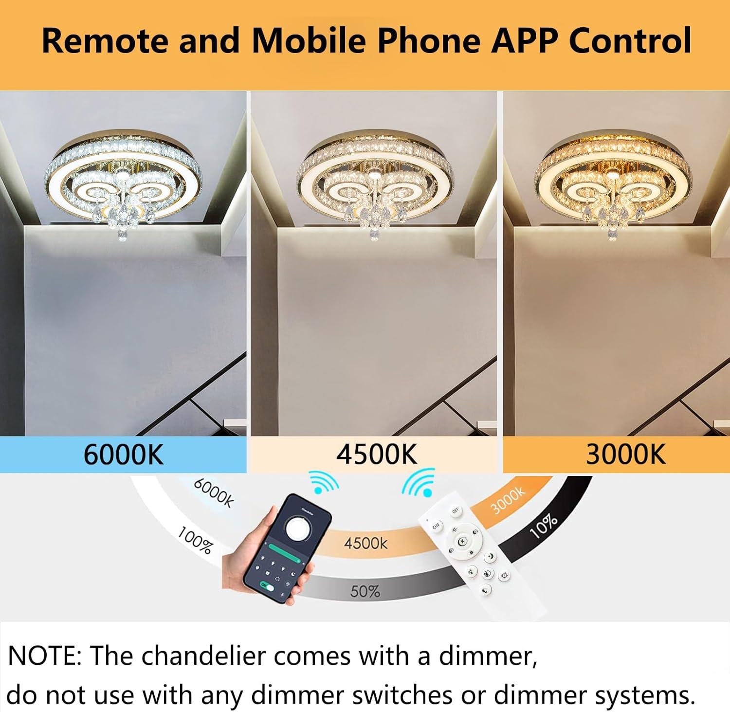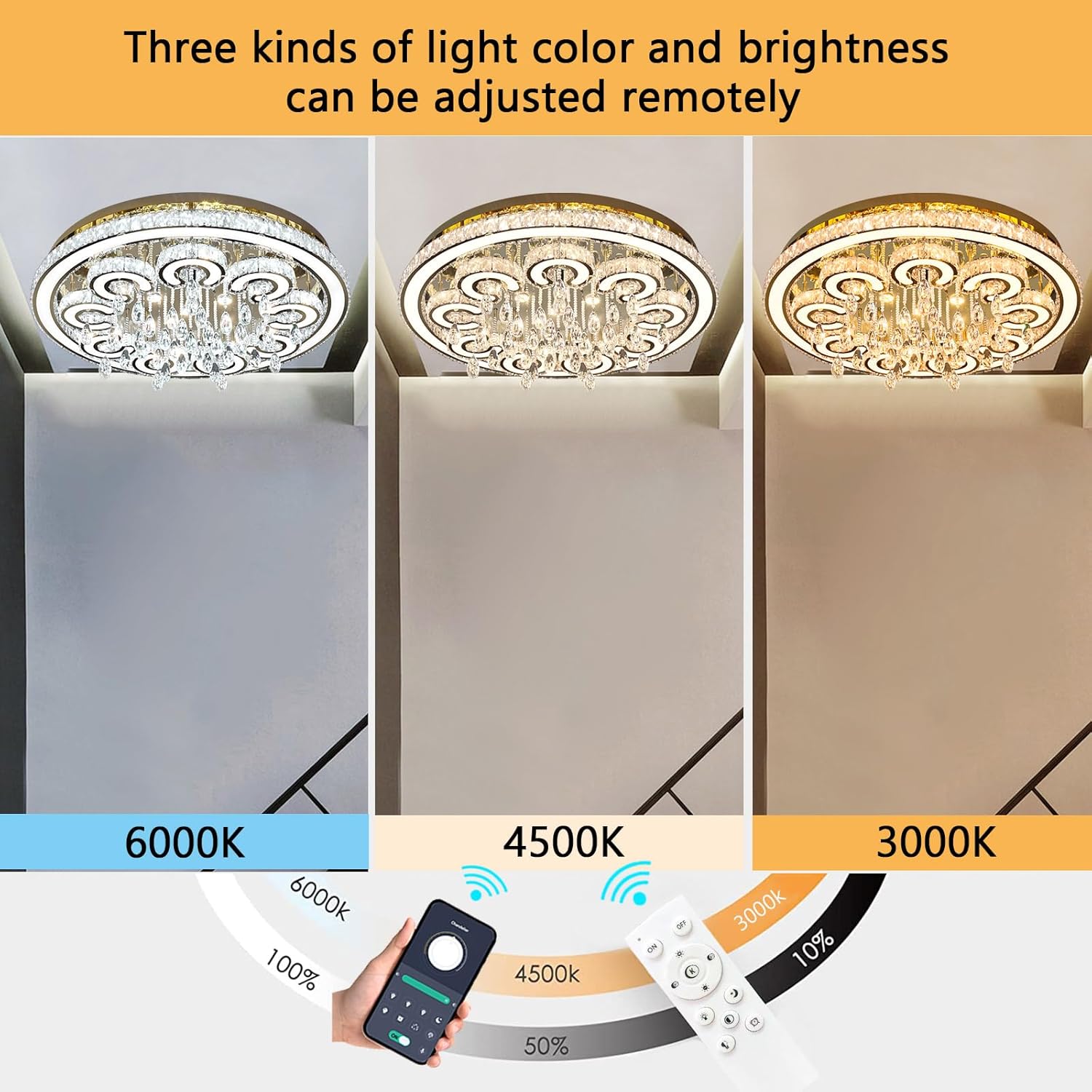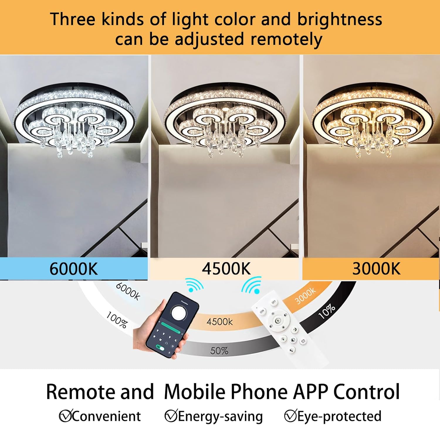Brightness and Lighting Colors are Adjustable – Chandelier come with remote control, any light color can be set from 2700K yellow light to 6000K white light, and control the brightness darker or brighter