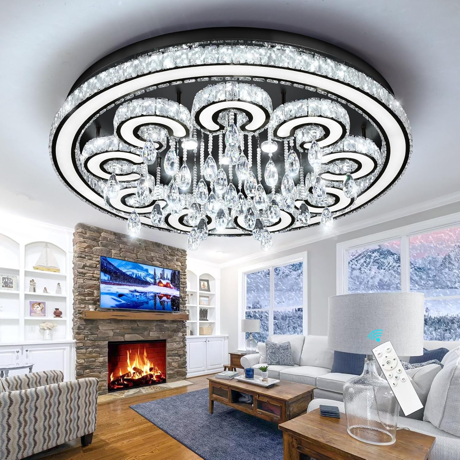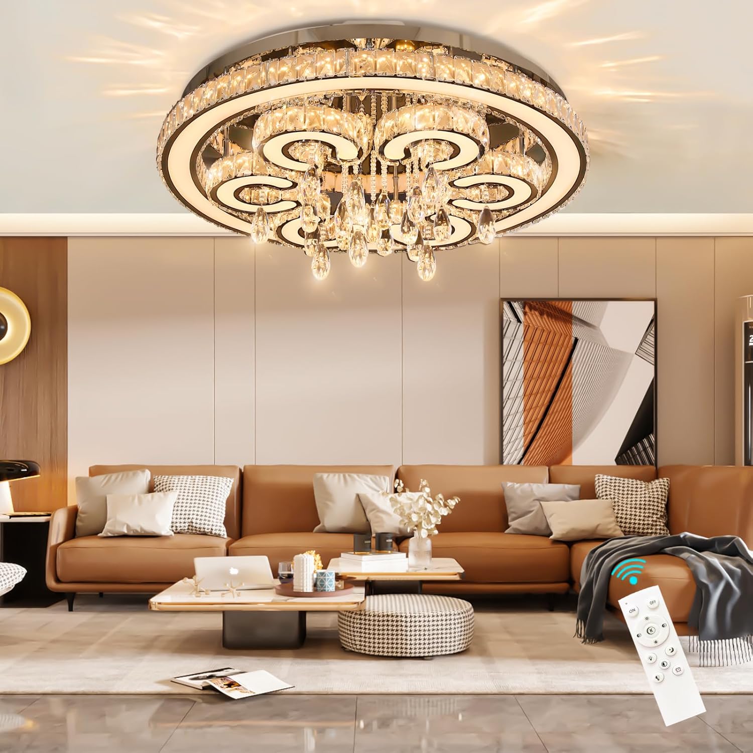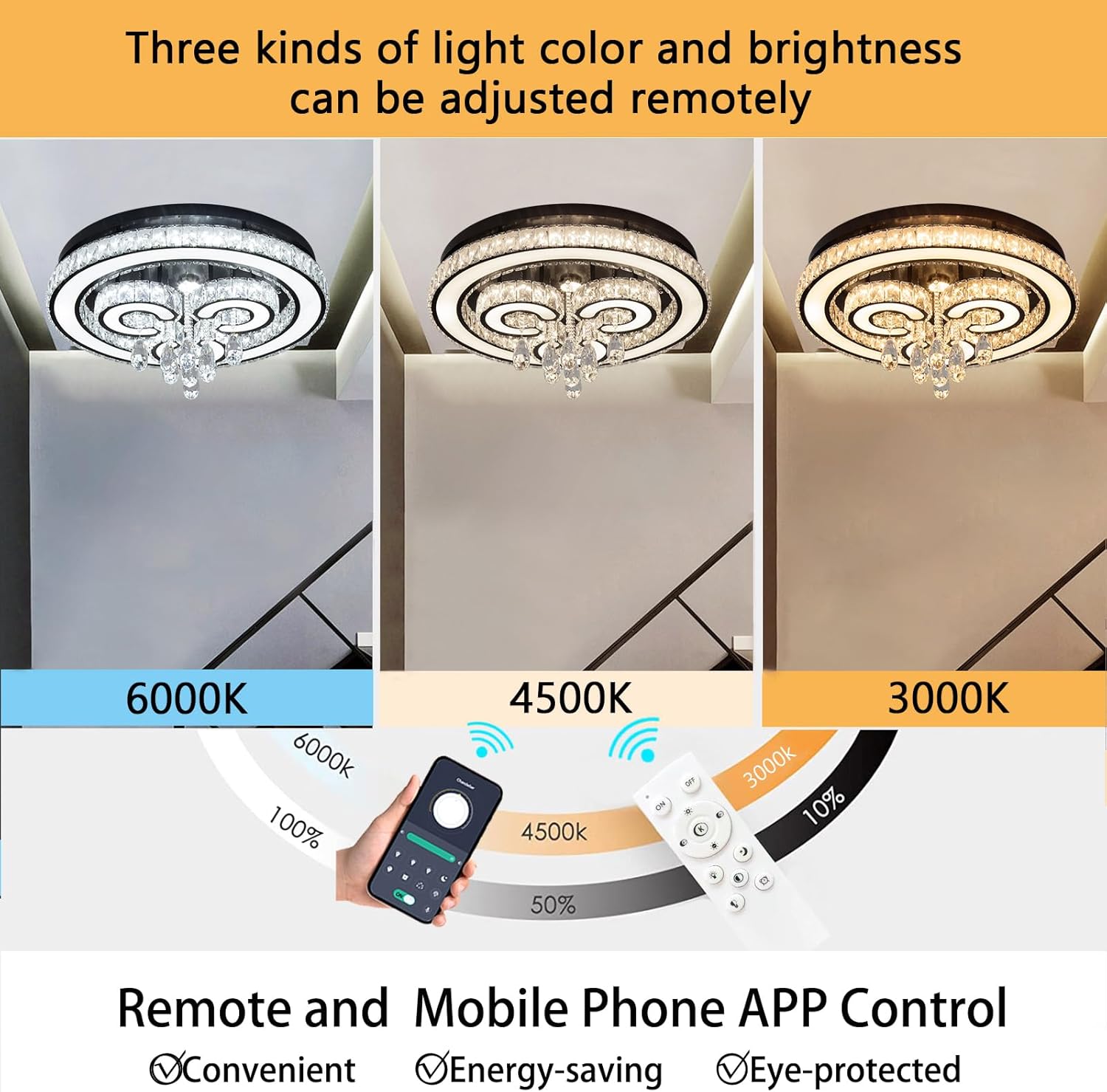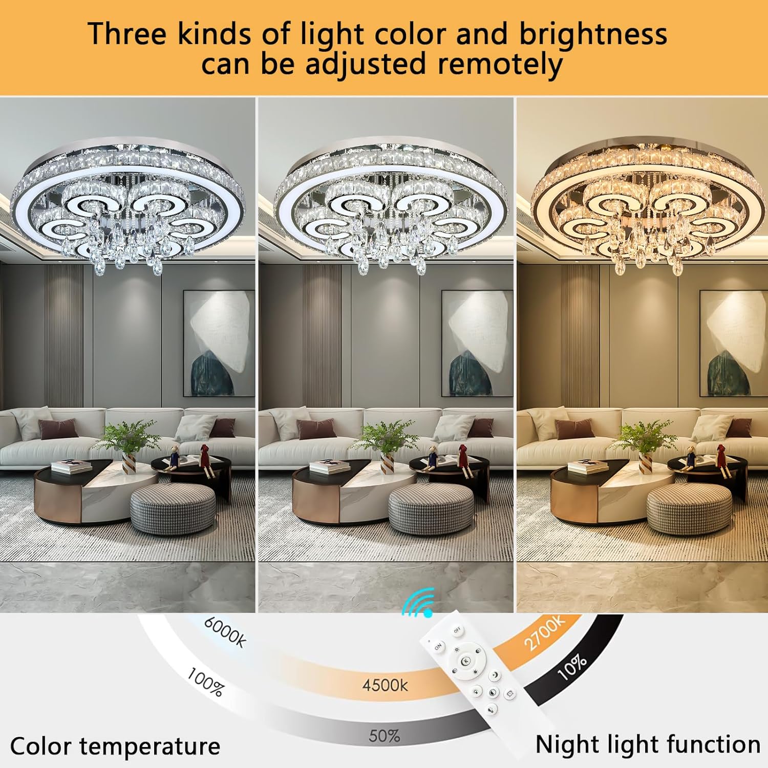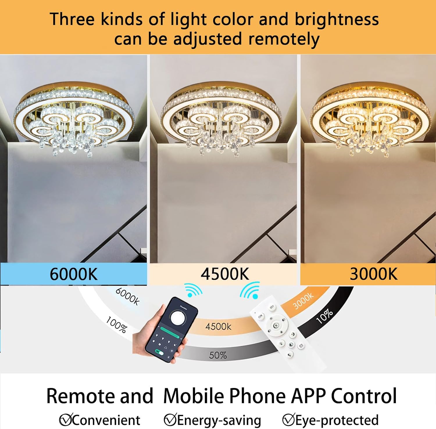 Brightness and Lighting Colors are Adjustable – Chandelier come with remote control, any light color can be set from 2700K yellow light to 6000K white light, and control the brightness darker or brighter
