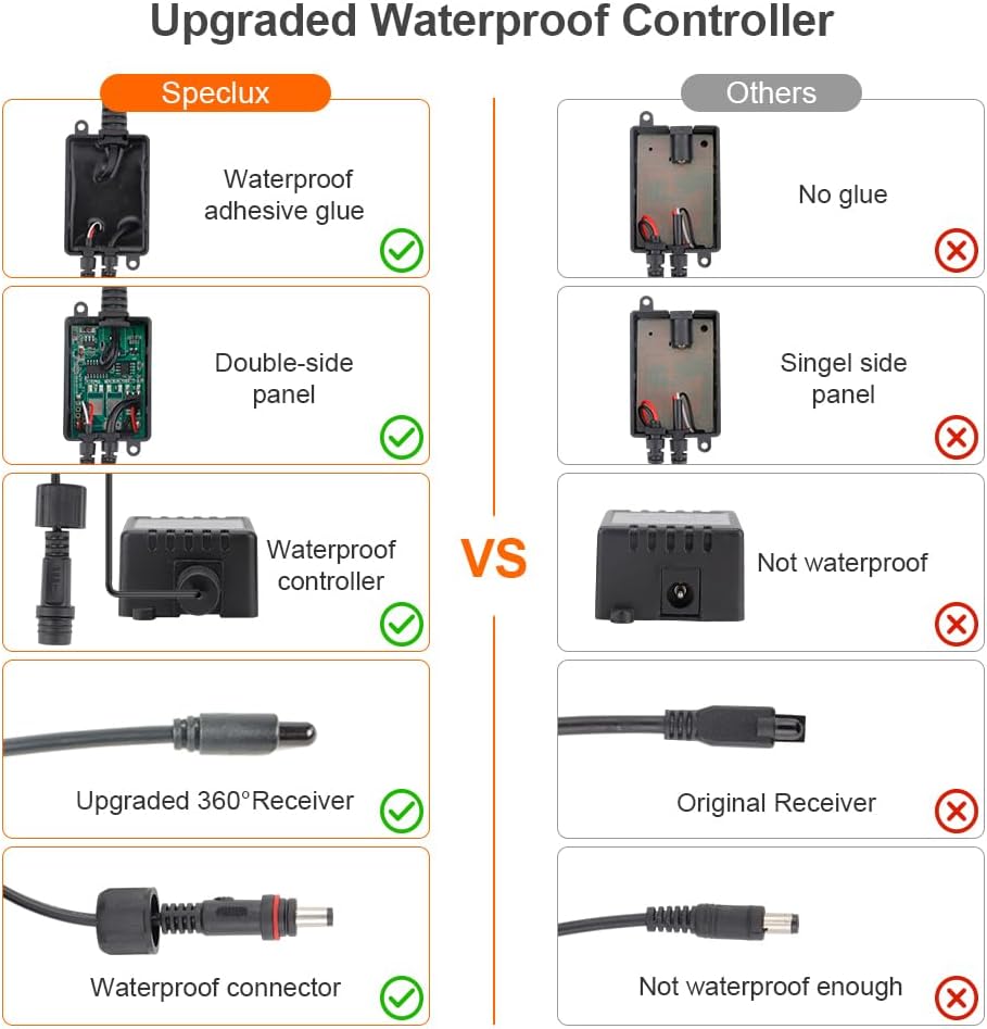 BEST CHOICE – Updated Remote Controller with short-circuit protection, 10 levels brightness and adjustable flash/smooth/strobe can create vibrant, dynamic atmospheres. We have upgraded the infrared receiver, and now it can sense the control in 360°, which is more sensitive and give you the better feeling.