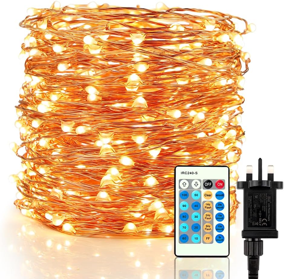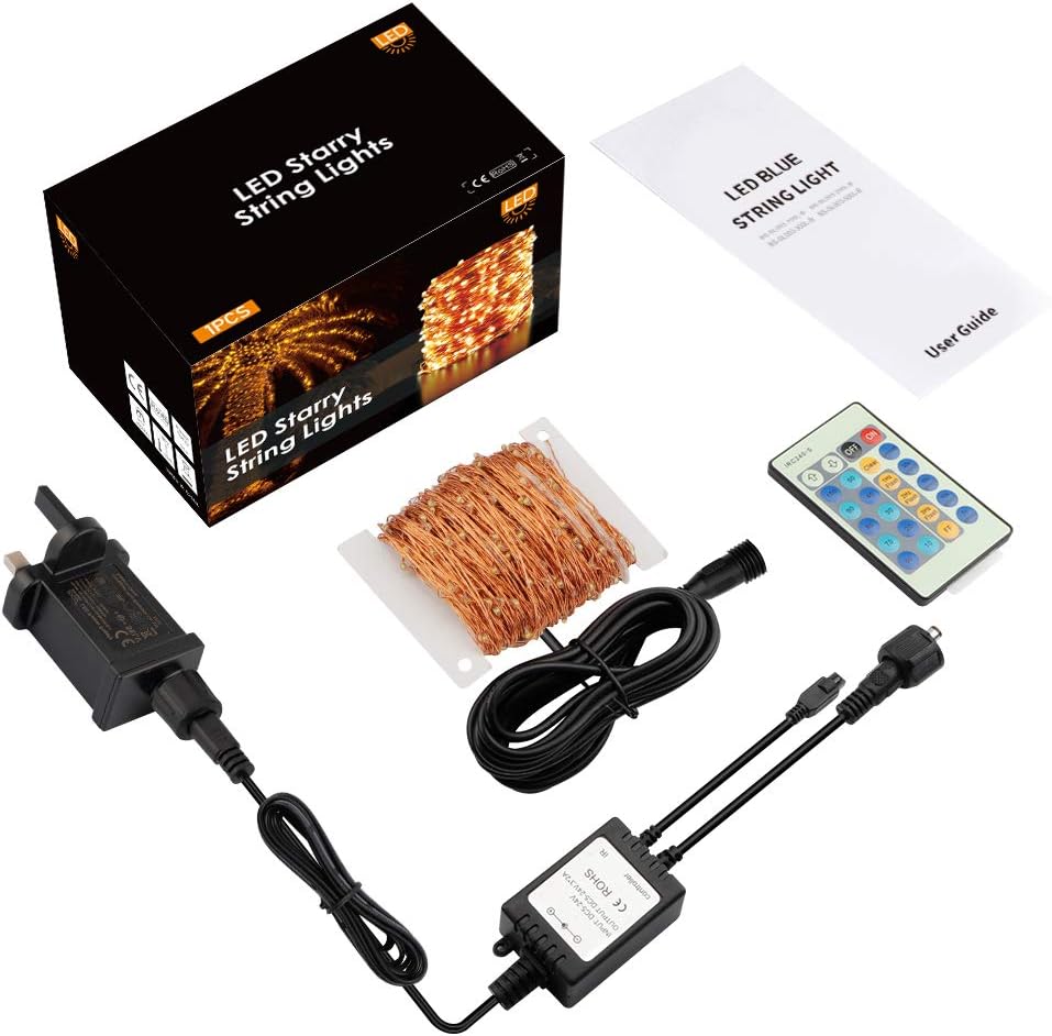 SAFE TO USE: UKCA,GS CERTIFIED – High-safety power adapter and controller to better protect you and twinkle lights on copper wire. waterproof starry fairy string lights make it safe for both indoors and outdoors use. Note: The remote controller and the connector are not waterproof