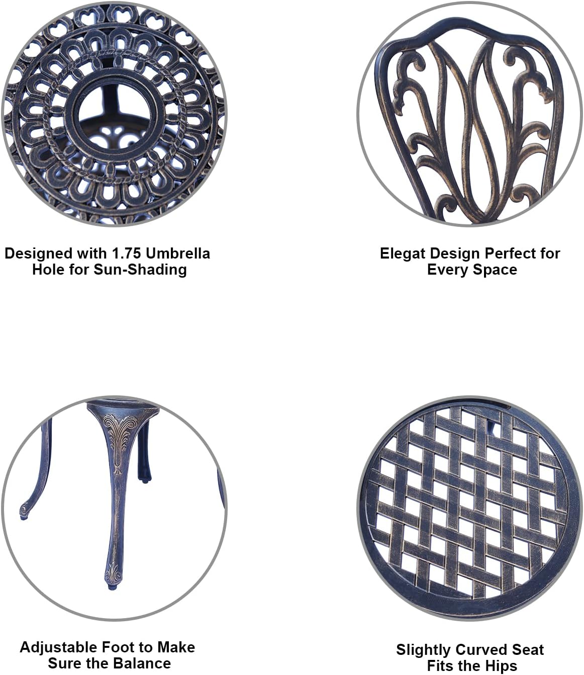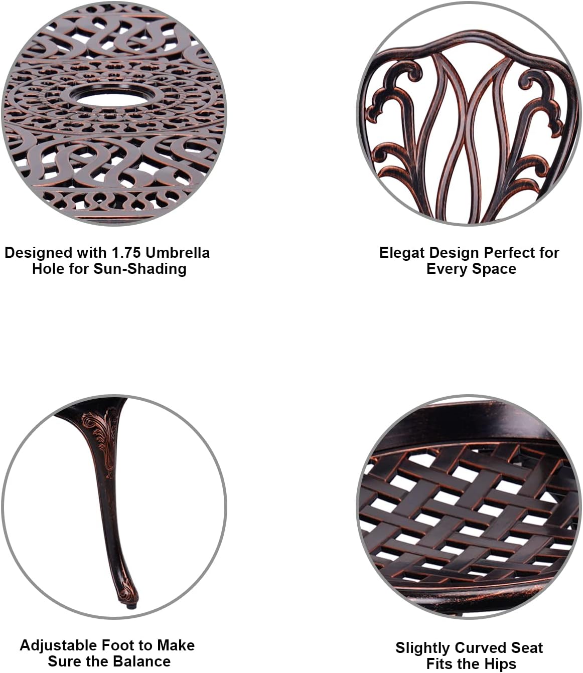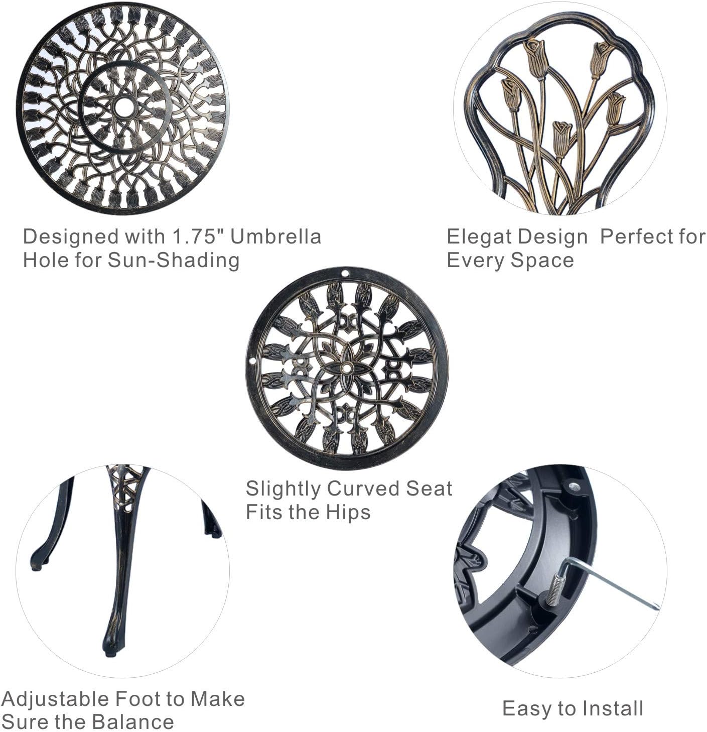【CAST ALUMINUM】 : Using high-density pure aluminum die-casting, to ensure the strength of the table and chair, no cracking, no deformation, no rust, smooth lines, beautiful appearance.