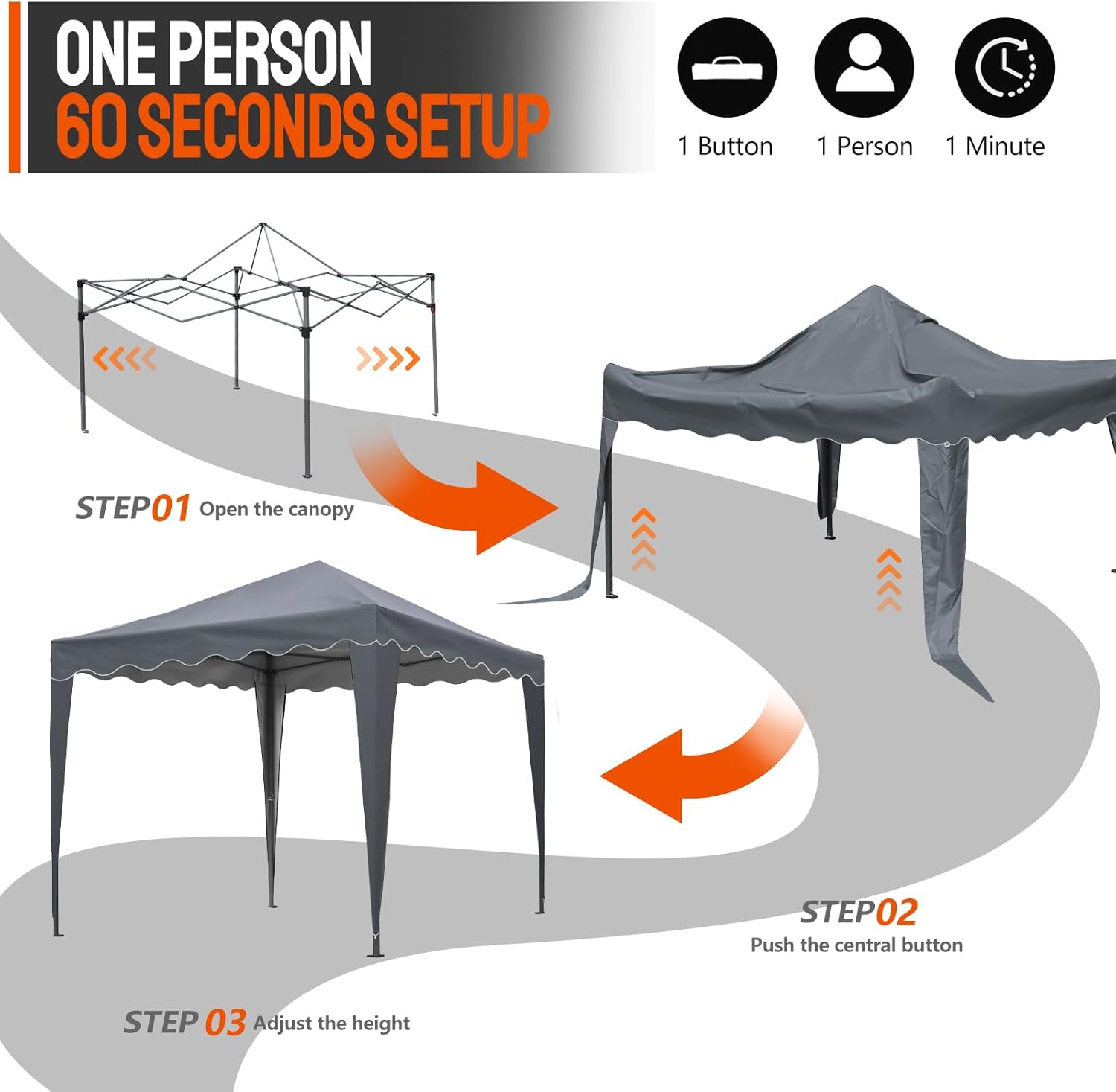 Effortless Setup: Transform your outdoor space in minutes with our pop up gazebo. Designed for quick and easy installation, it provides instant shade and shelter without the hassle. Enjoy more time relaxing and less time assembling.