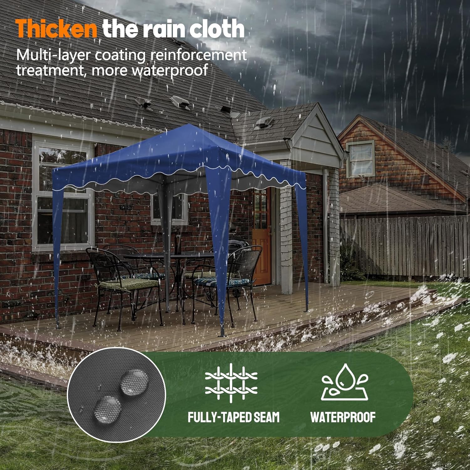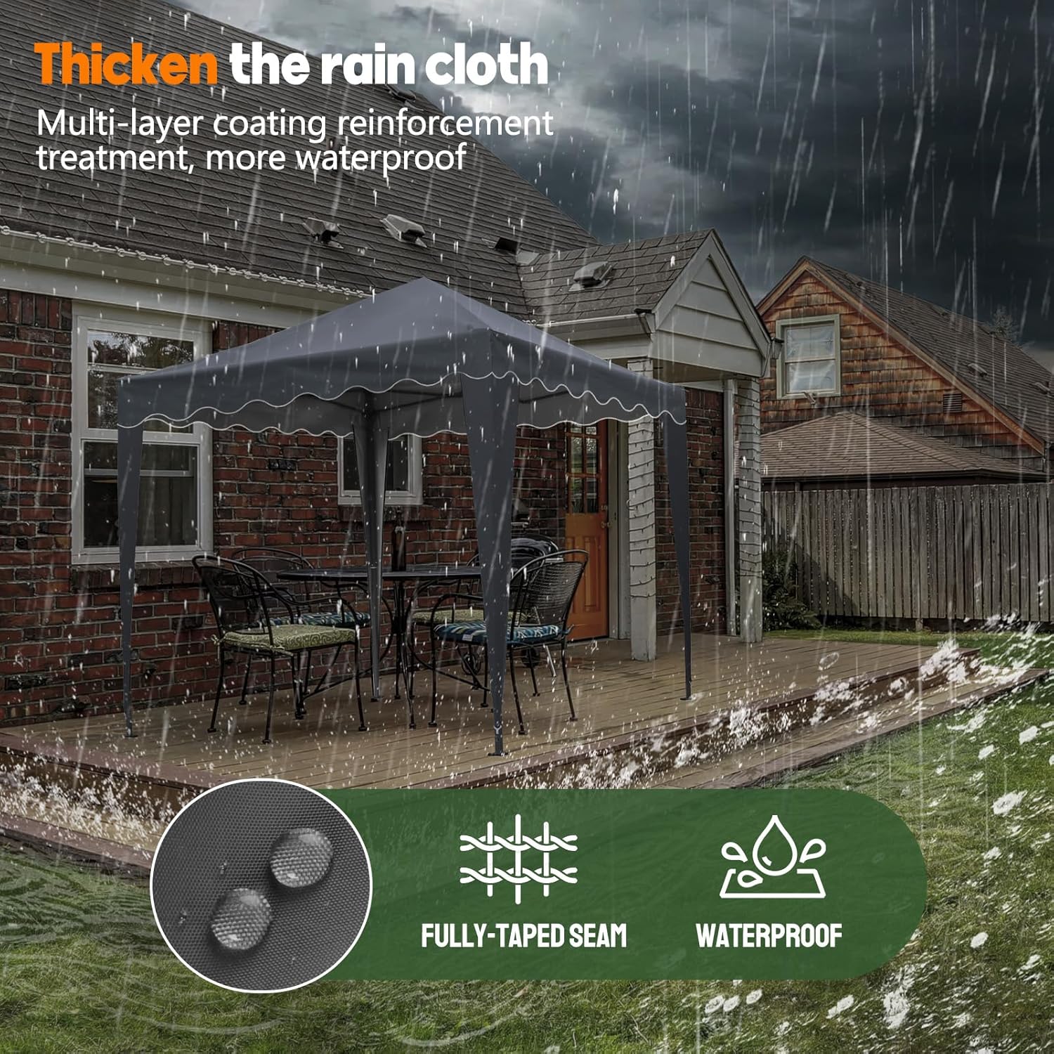 Solid Structure: Crafted with a robust frame, this gazebo boasts a solid structure that withstands the elements. Its durable design ensures long-lasting use, making it a reliable addition to your backyard or event setup.