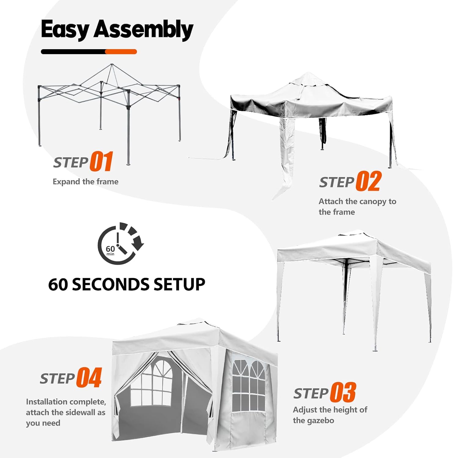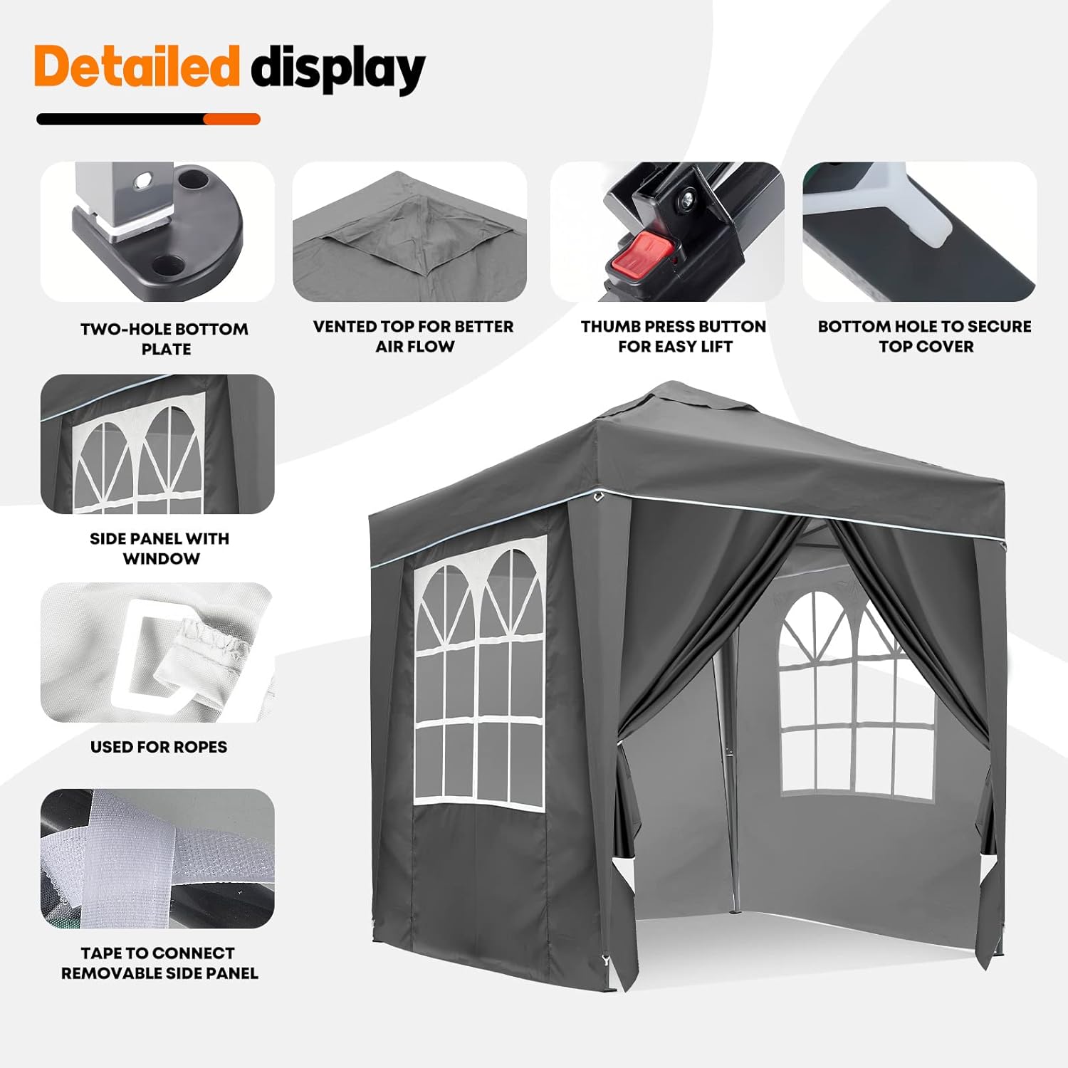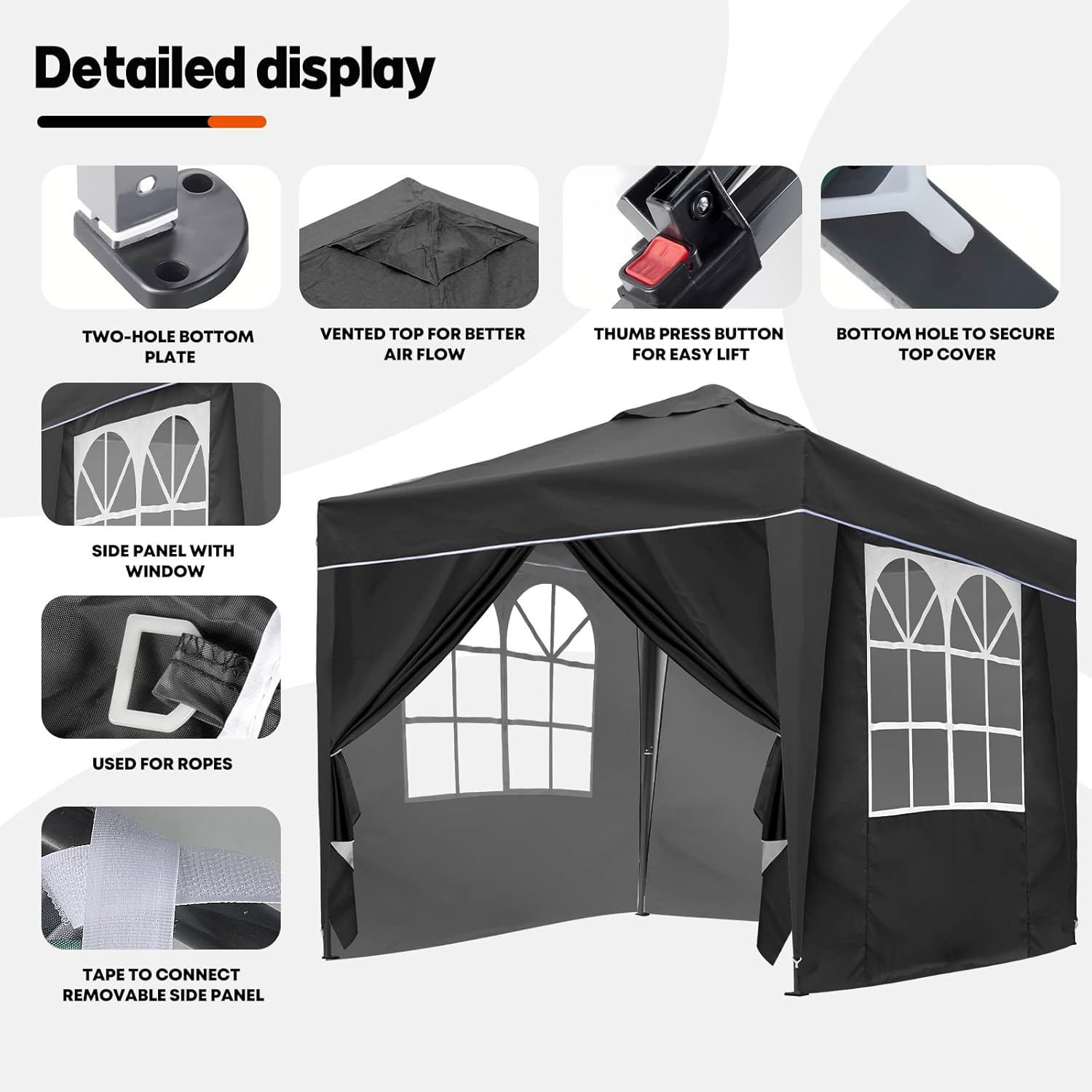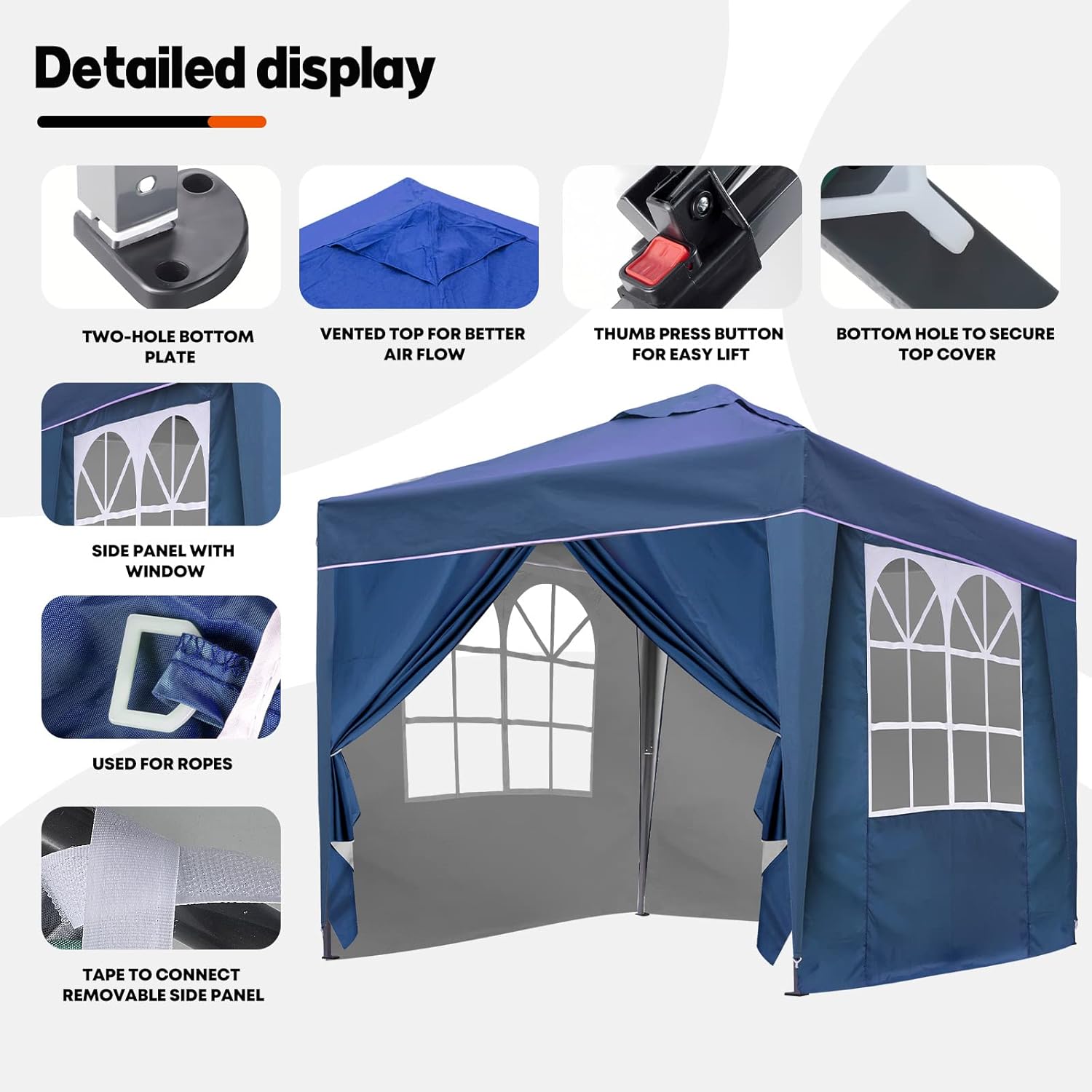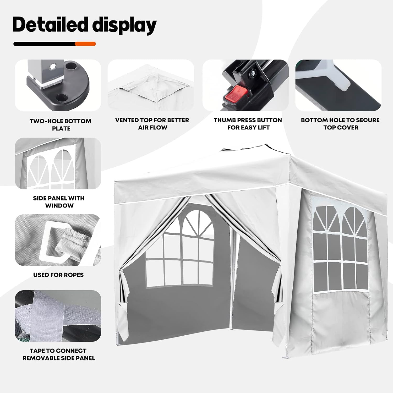 4 REMOVABLE SIDEWALLS FOR VERSATILITY: The 4 sidewalls including the zipped door way are all easily removable to meet all your needs, no matter you want to hold a party inside the canopy or make it more freely;