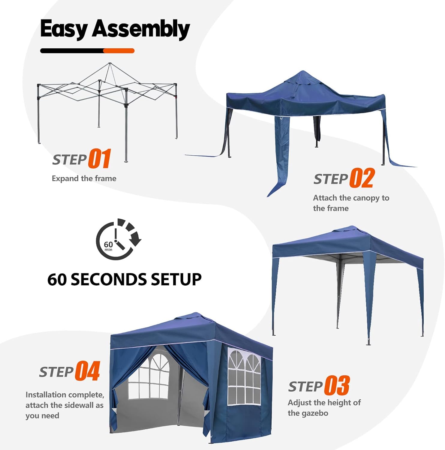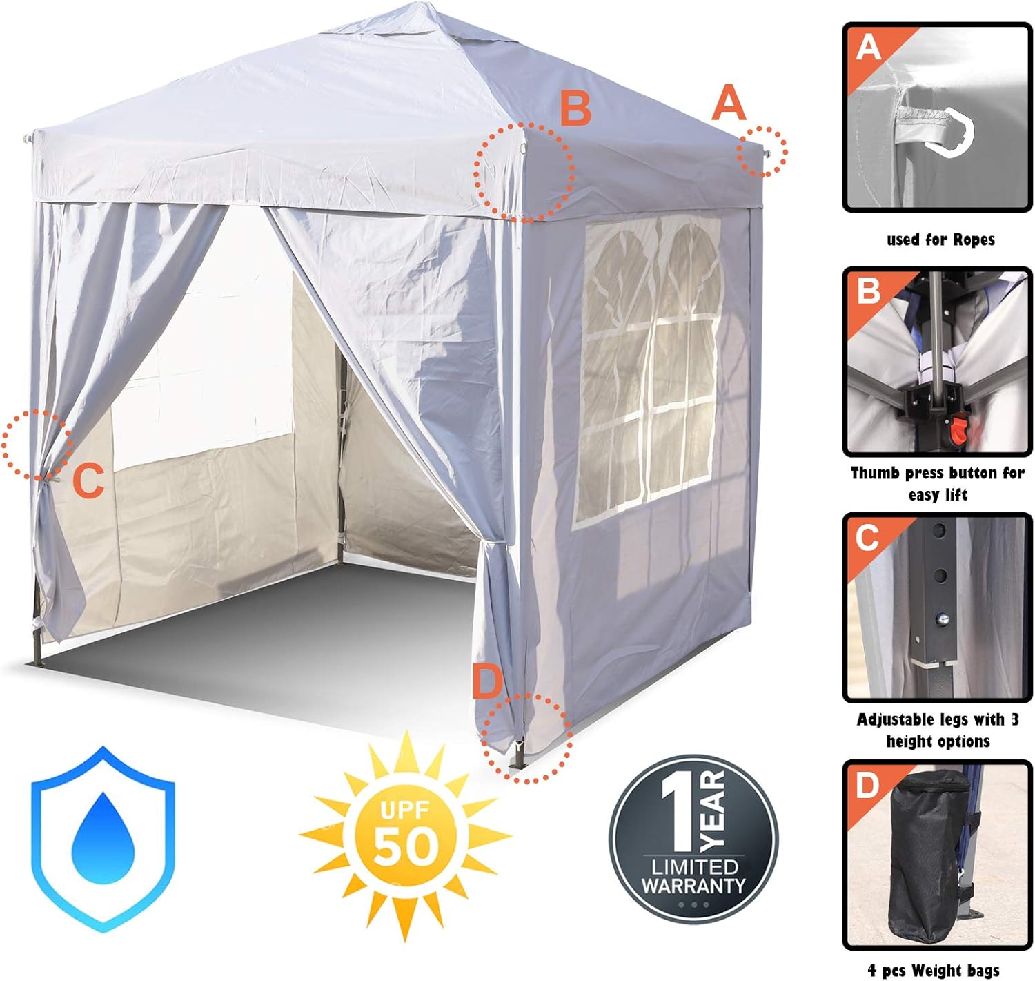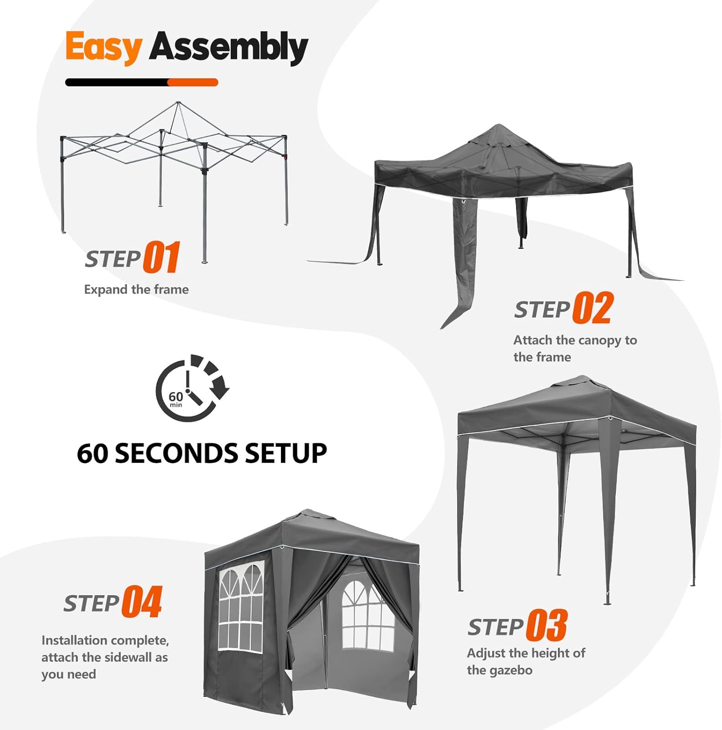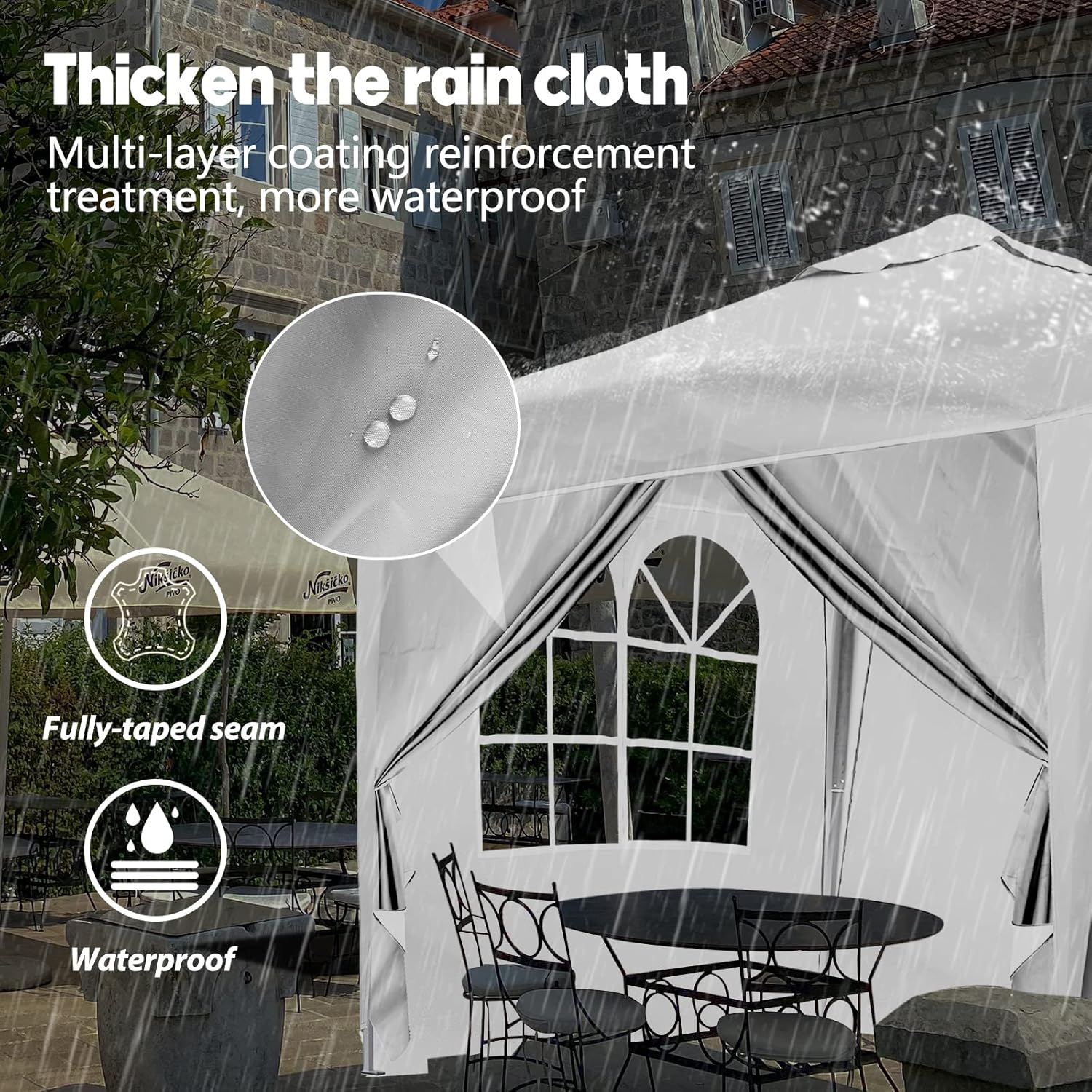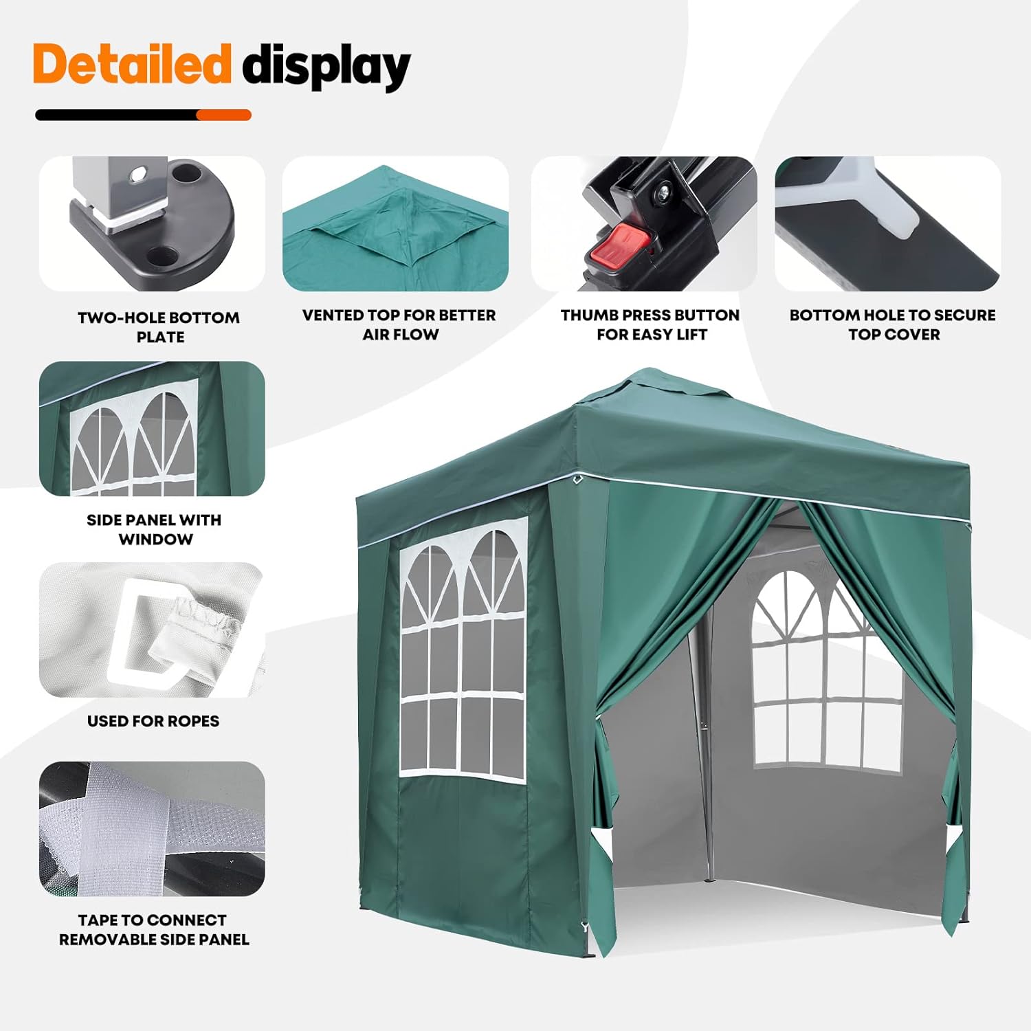 4 REMOVABLE SIDEWALLS FOR VERSATILITY: The 4 sidewalls including the zipped door way are all easily removable to meet all your needs, no matter you want to hold a party inside the canopy or make it more freely;