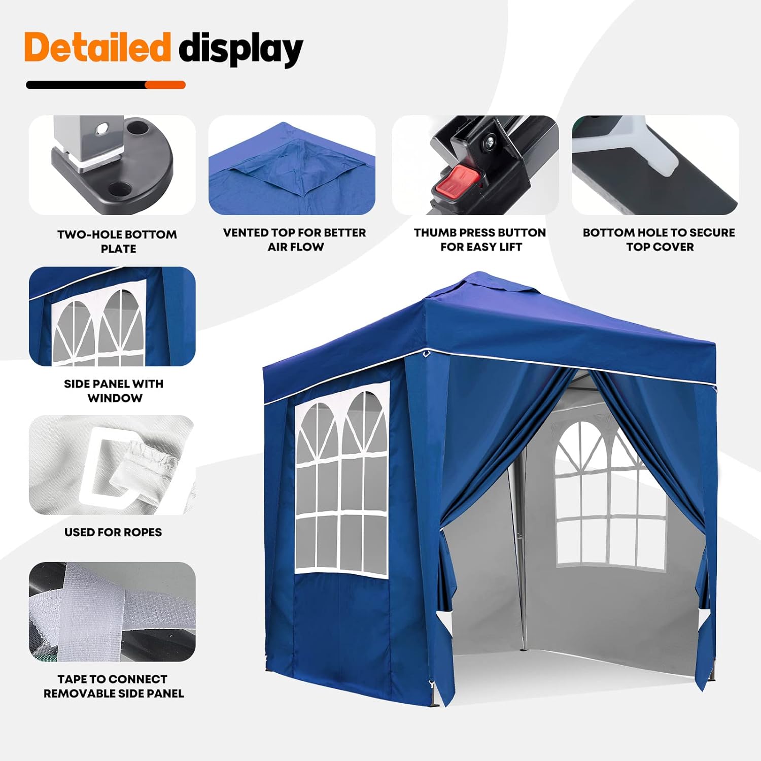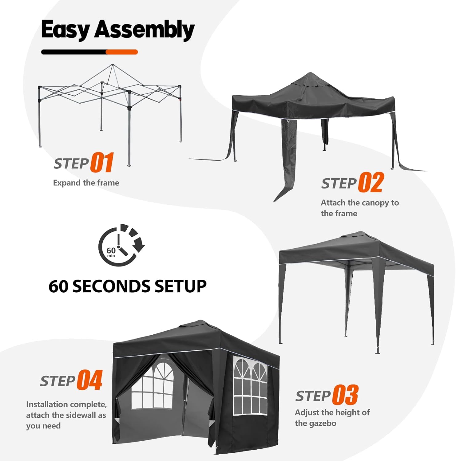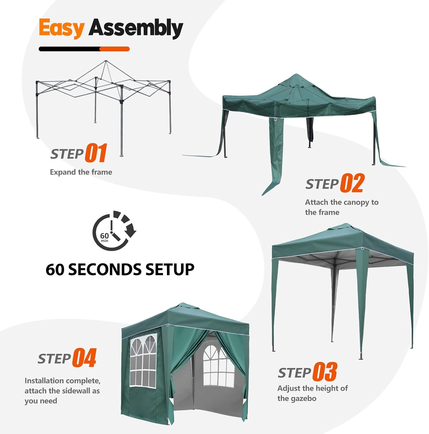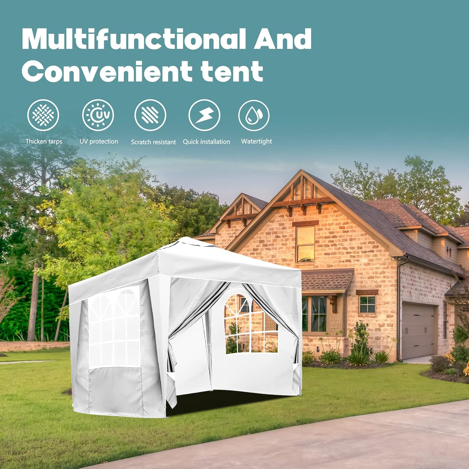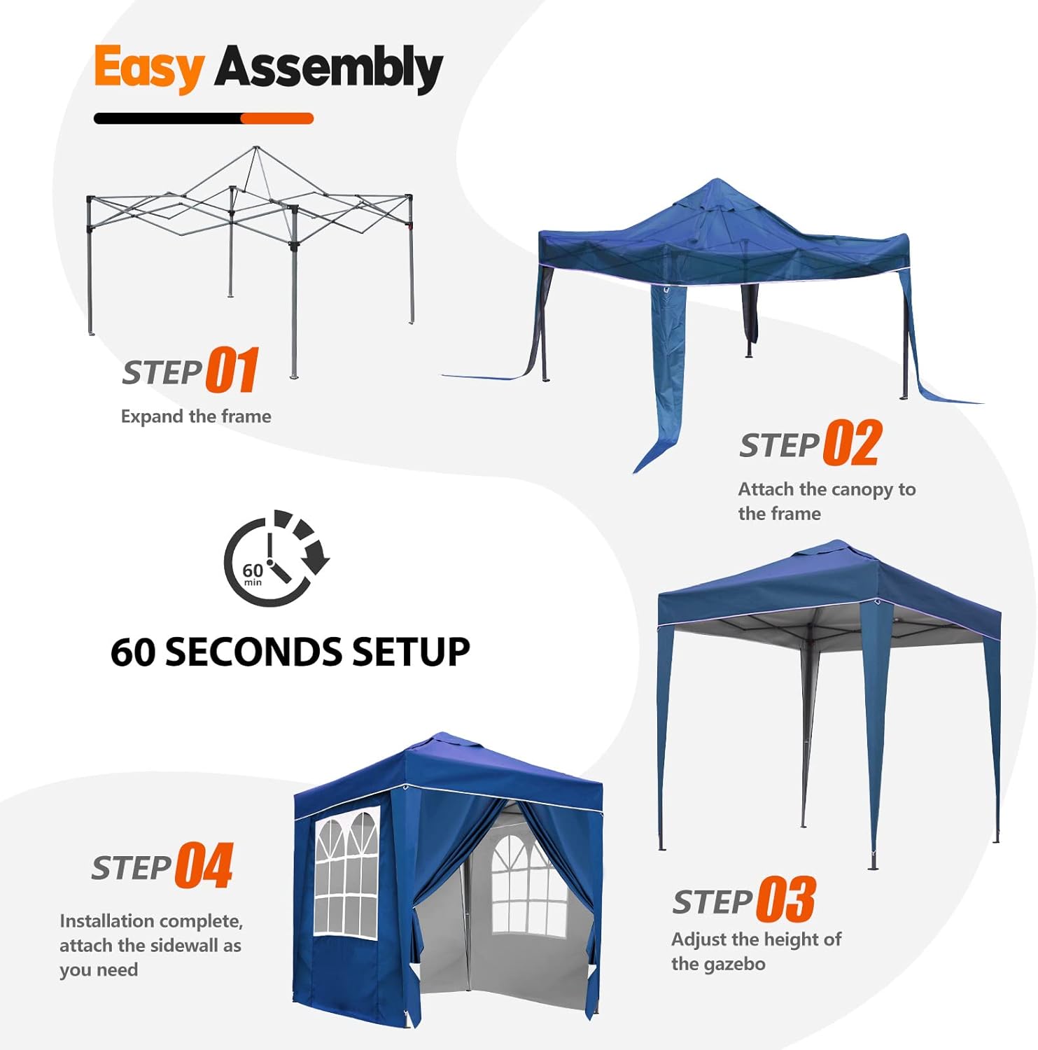 4 REMOVABLE SIDEWALLS FOR VERSATILITY: The 4 sidewalls including the zipped door way are all easily removable to meet all your needs, no matter you want to hold a party inside the canopy or make it more freely;