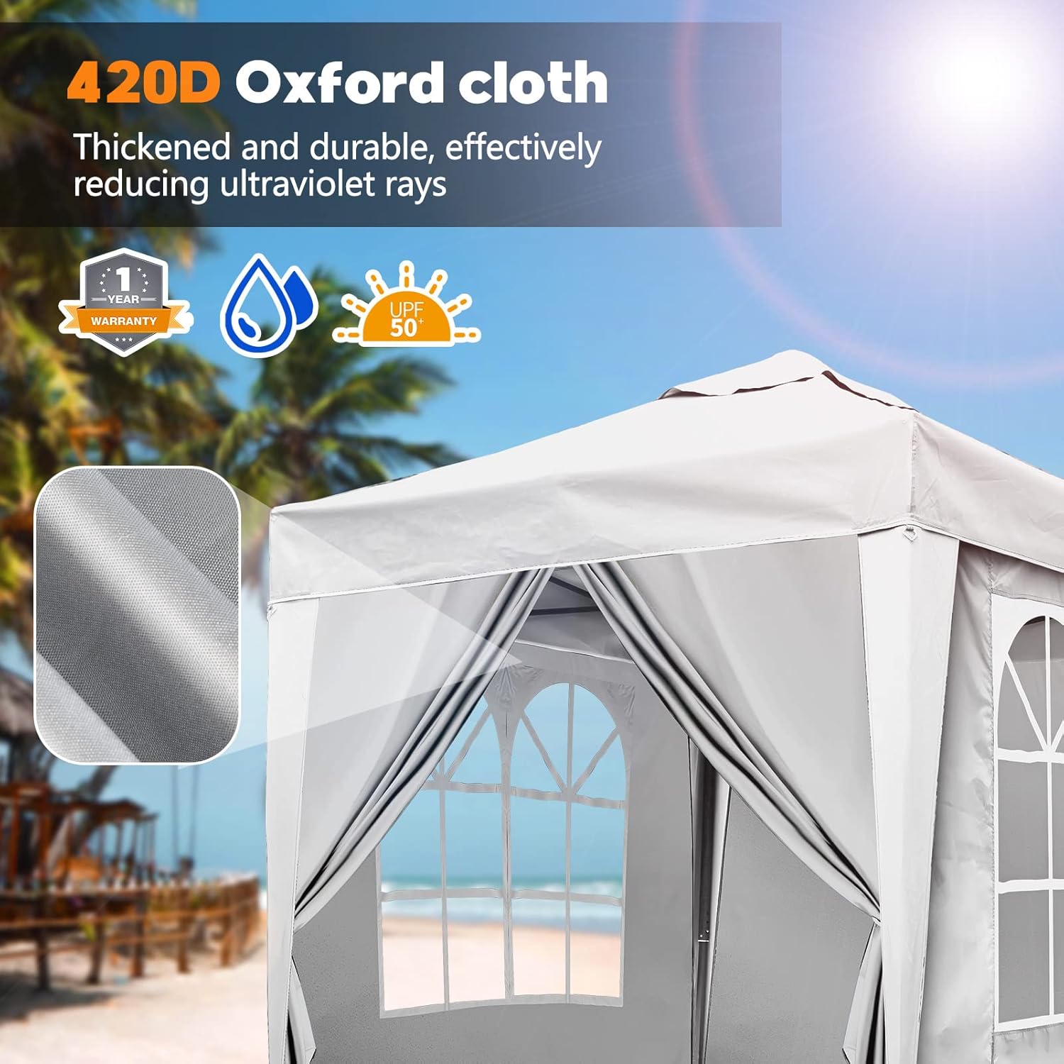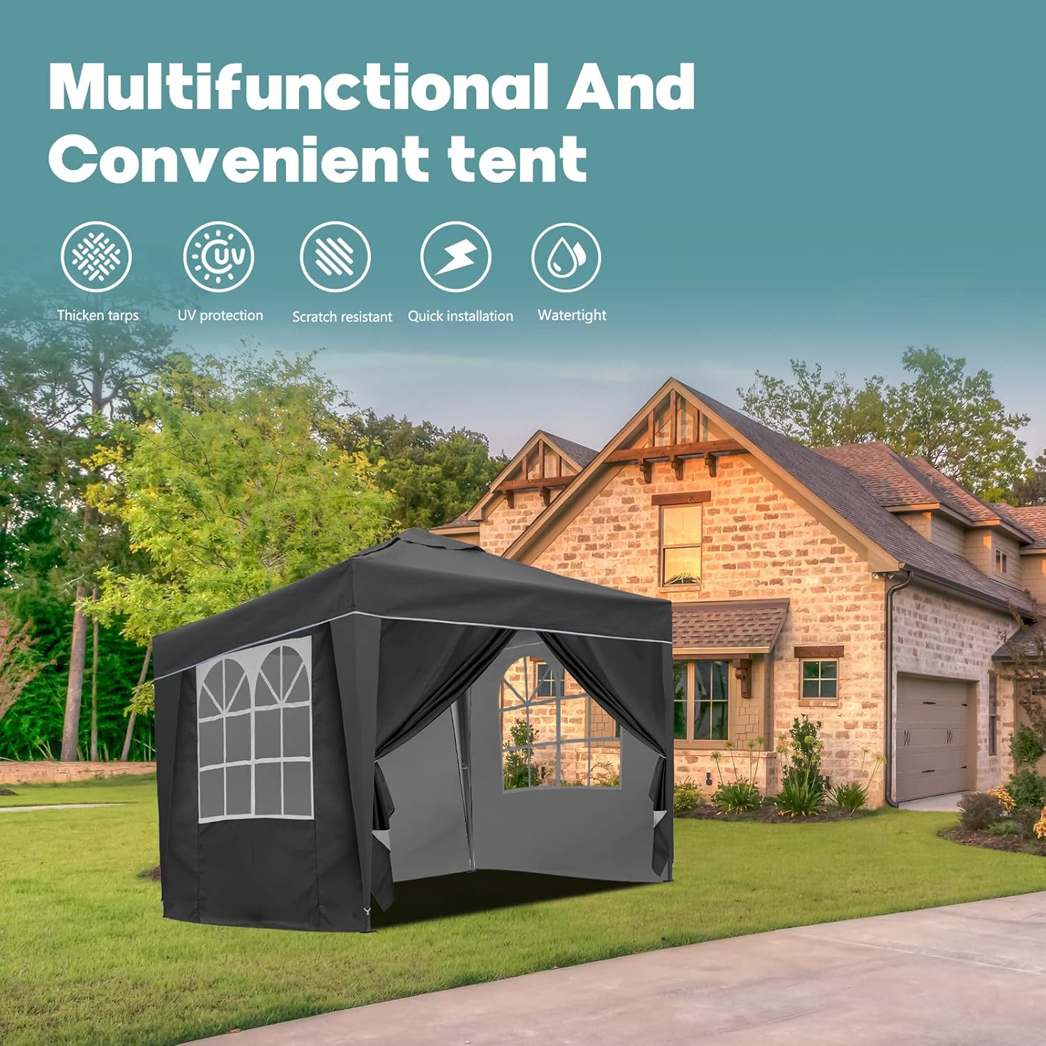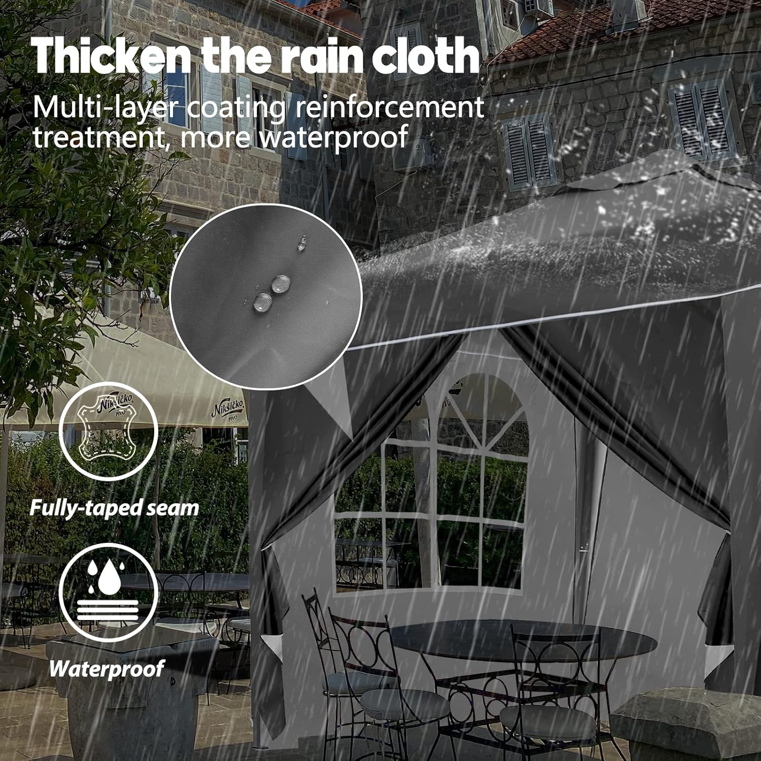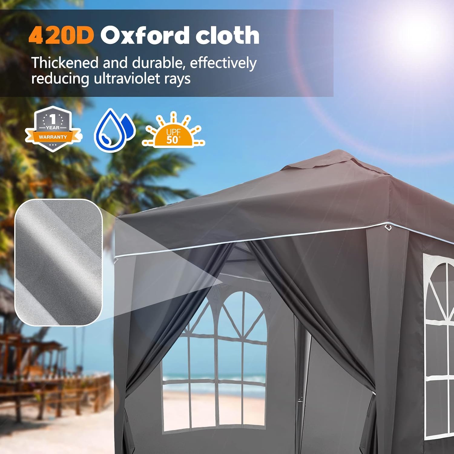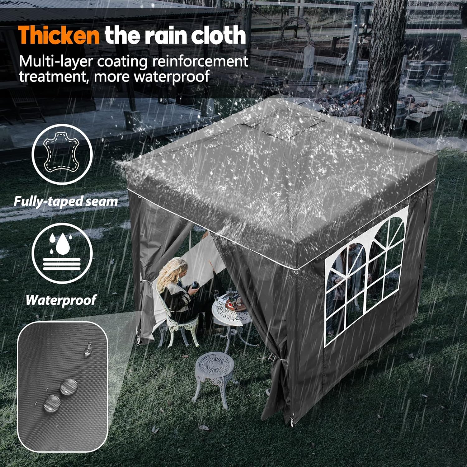 4 REMOVABLE SIDEWALLS FOR VERSATILITY: The 4 sidewalls including the zipped door way are all easily removable to meet all your needs, no matter you want to hold a party inside the canopy or make it more freely;