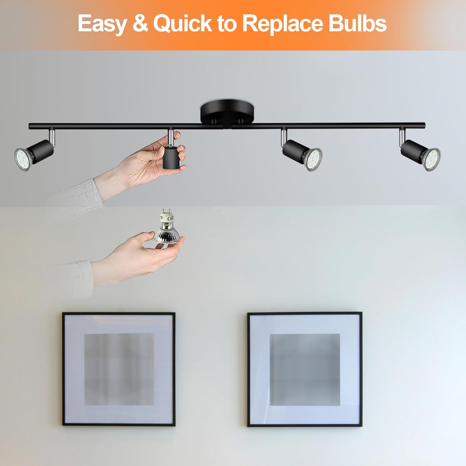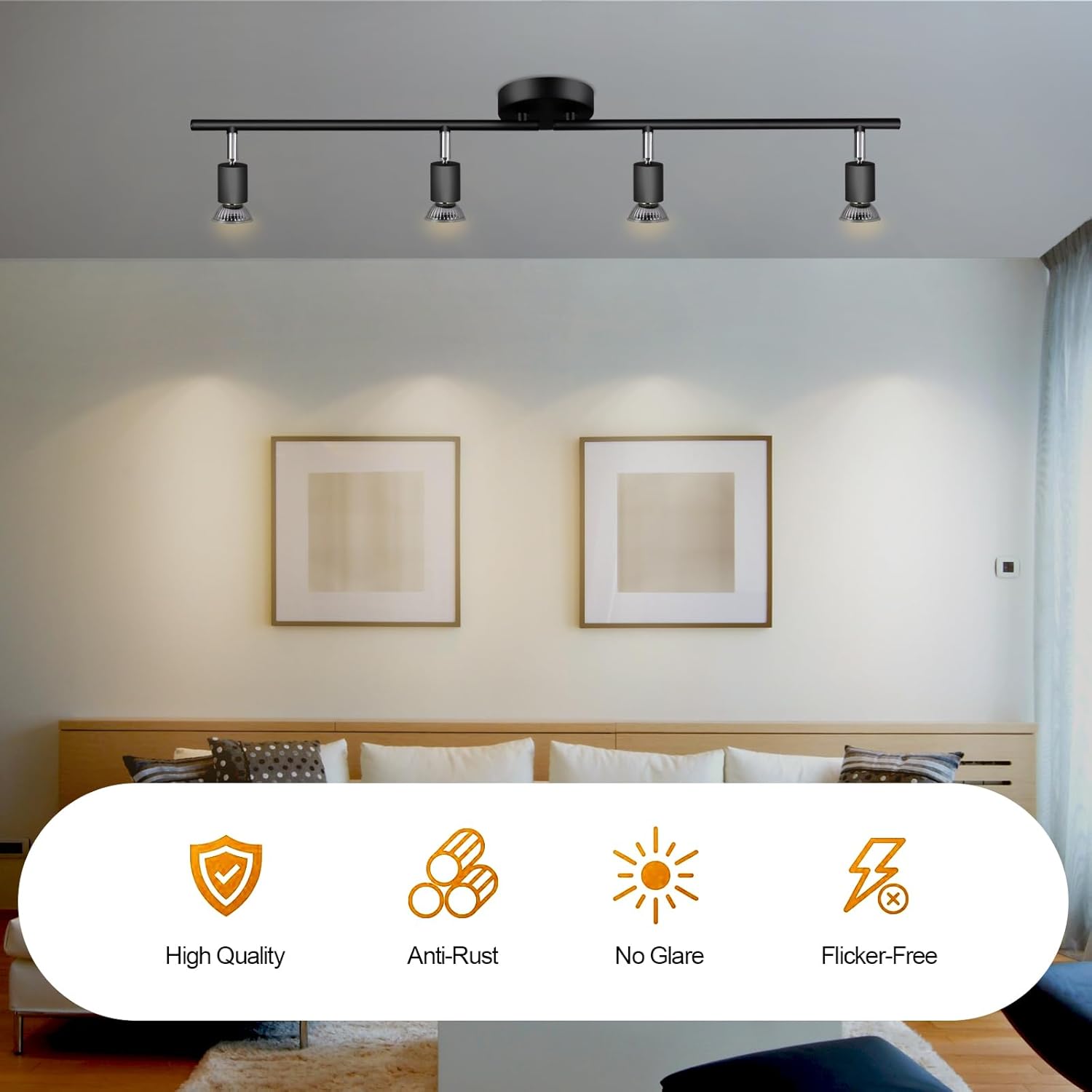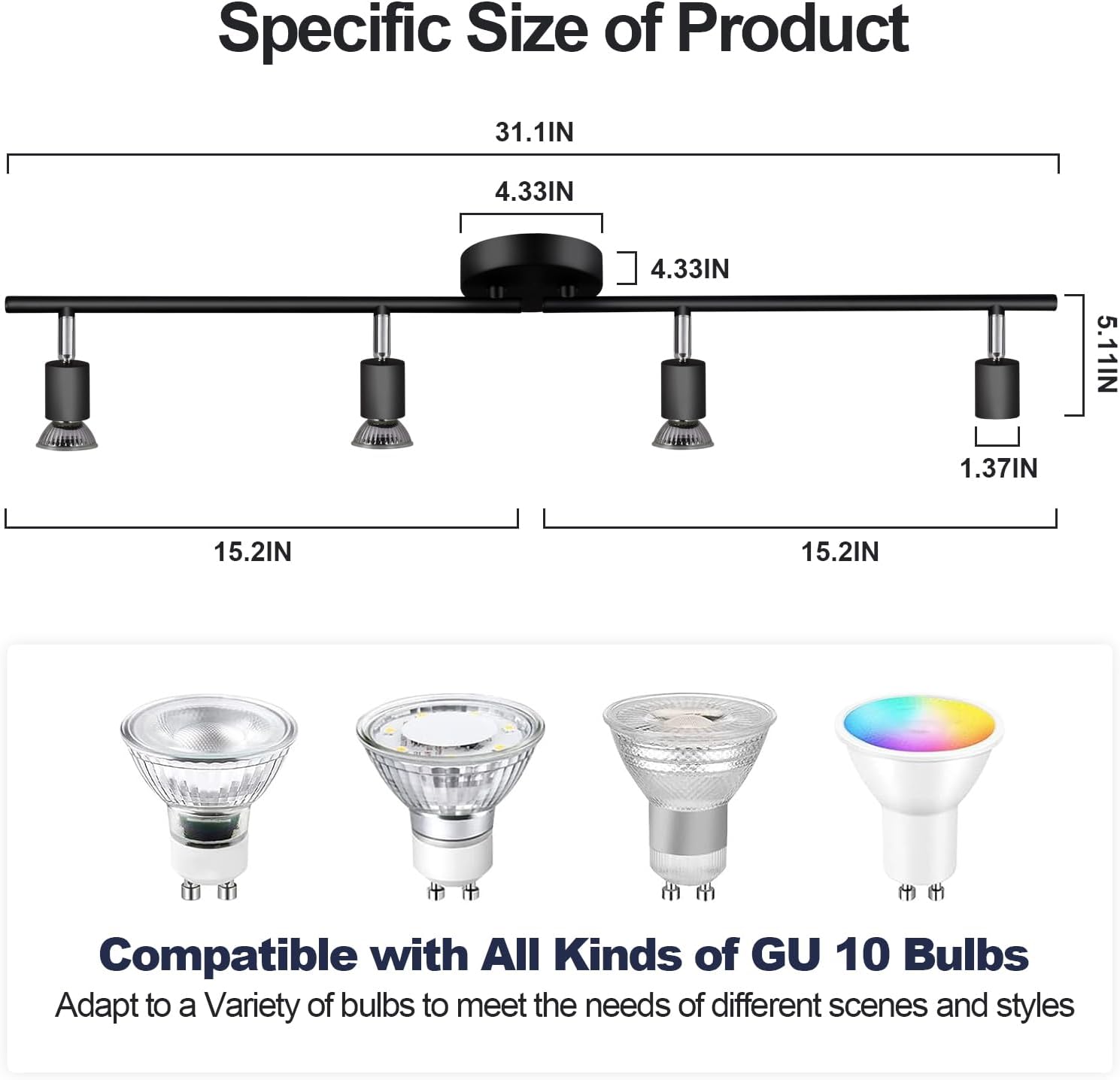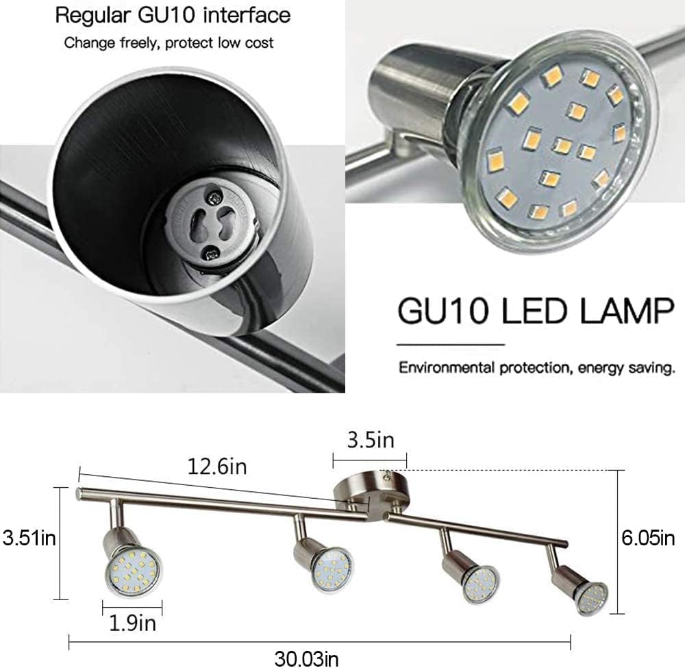 Modern Stylish Design: The 4-light track lighting is made of high-quality metal with matte nickel design, baking paint, no fading, corrosion resistance, no cracking, take fashionable. 4 track heads offer sufficient illumination to create a warm and soft atmosphere to your home. Size: L30.03in * H6.05in
