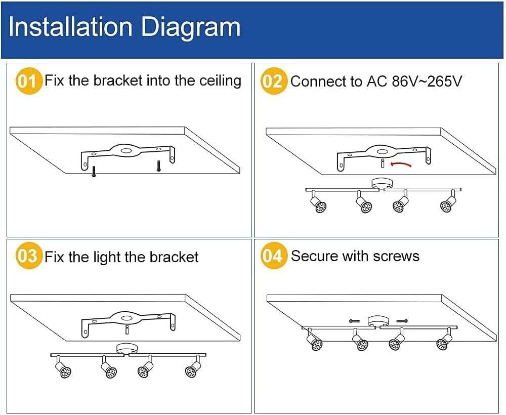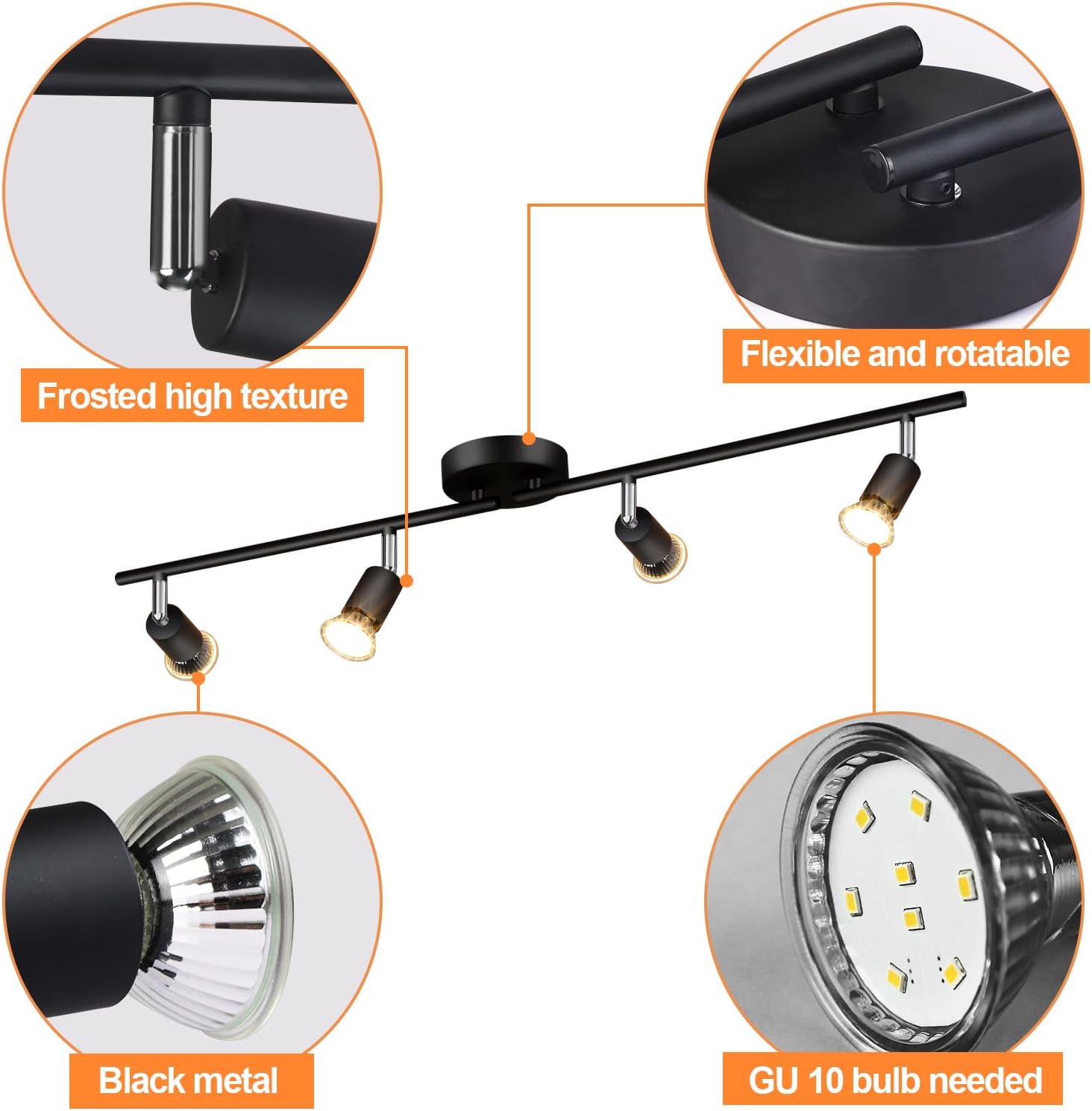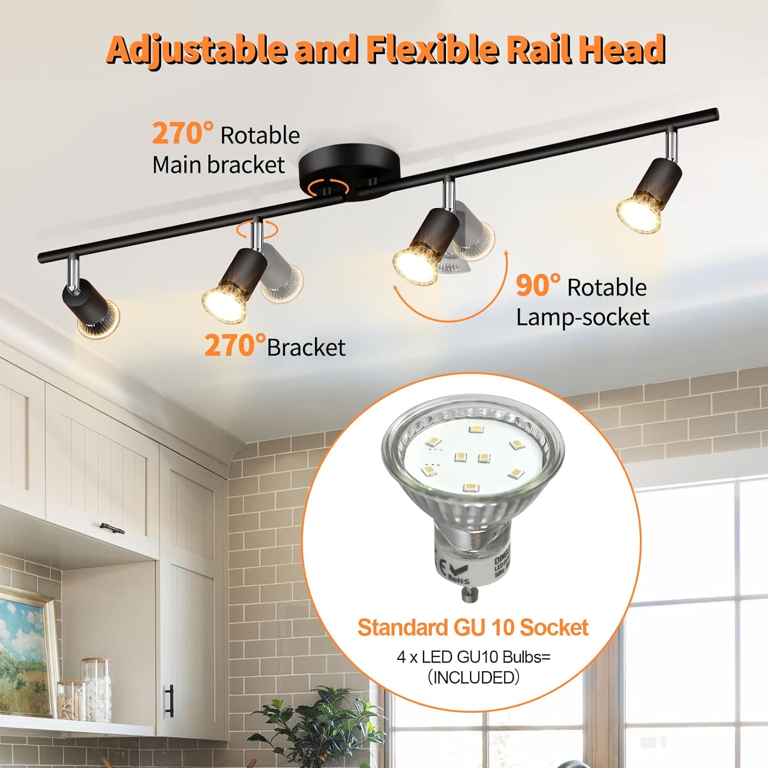 Multi-angle Illumination: You can adjust the lights and arms to different angles, including a V shape, side to side, and up and down. The kitchen track light fixtures provide a large lighting angle to meet your different requirements